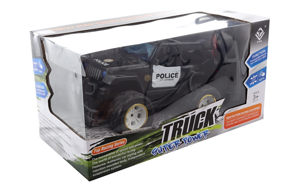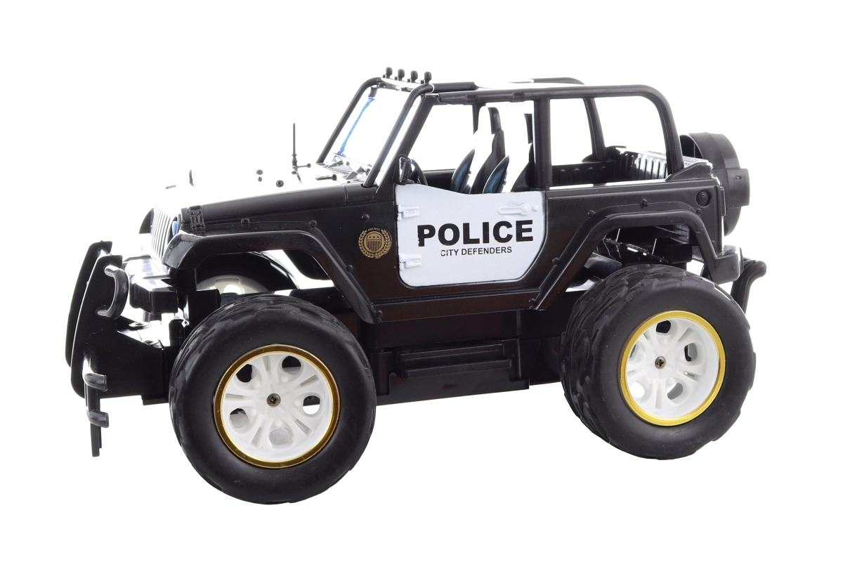 Das Polizei-RC-Auto im realistischen Offroad-Stil sorgt für spannende Unterhaltung für kleine Fahrer. Die Steuerung ist intuitiv und das Auto meistert verschiedene Untergründe, während die Scheinwerfer für einen attraktiven Effekt beim Fahren sorgen.