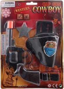 Unterhaltsames Set für kleine Cowboys und Polizisten: Kinder-Knallpistole mit Holster und Abzeichen. Ideal für Rollenspiele, fördert die Fantasie und bietet einen authentischen Soundeffekt. Die Pistole besteht aus robustem Kunststoff, liegt gut in der Hand und ist für 8-Schuss-Kapseln geeignet (nicht im Lieferumfang enthalten).