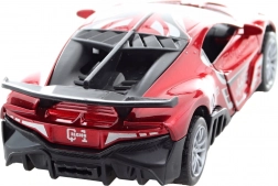 Genießen Sie eine dynamische Fahrt mit diesem Metall-Sportwagen mit Rückziehfunktion, der durch zu öffnende Türen, detailreiche Verarbeitung und eine kompakte Größe besticht – ideal für Kinderspiel und Sammlervitrine.