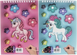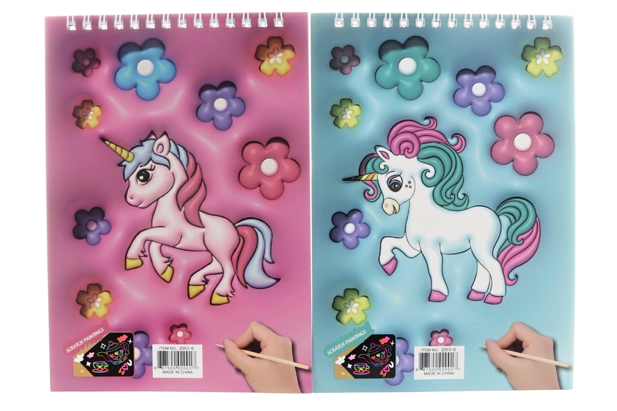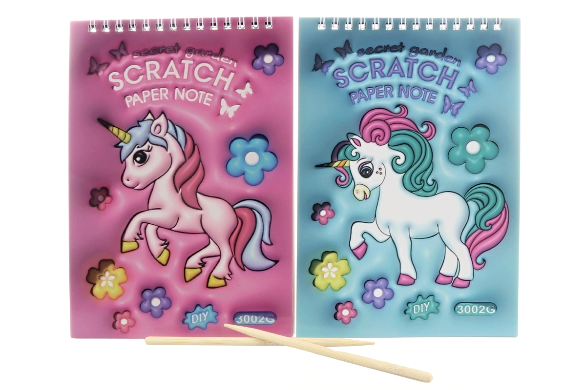 Entdecken Sie eine unterhaltsame Art des Zeichnens mit dem Kratz-Kritzelheft im Einhorn-Design. Streichen Sie die schwarze Schicht sanft ab, und darunter kommen leuchtende Farben zum Vorschein, die jeden Strich in ein magisches Bild verwandeln. Dank der Spiralbindung lassen sich die Seiten leicht umblättern und das Heft behält gut seine Form.