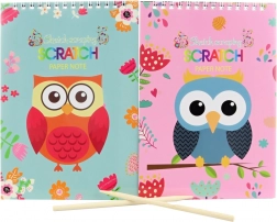 Das kreative Kratz-Notizbuch mit Eulenmotiv bietet Kindern und Erwachsenen stundenlangen Bastelspaß. Es enthält 8 schwarze Seiten mit farbigem Untergrund, auf denen Sie mit dem beiliegenden Holzstift eigene Bilder freikratzen können. Die praktische Spiralbindung erleichtert das Blättern und macht die Nutzung zu Hause wie unterwegs bequem.