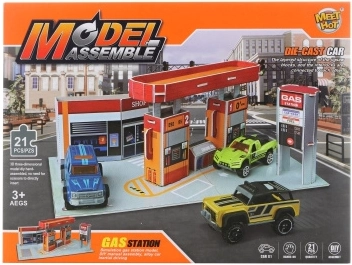 Bauen Sie Ihre erste Tankstelle und genießen Sie stundenlangen kreativen Spielspaß. Das Set fördert die Feinmotorik, die Fantasie und das logische Denken der Kinder. Das Metallauto ist robust und sofort nach dem Auspacken einsatzbereit.
