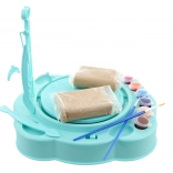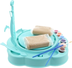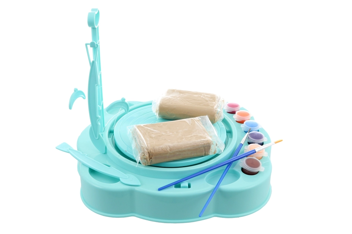 Diese Töpferscheibe für Kinder bietet großen Spaß und fördert Feinmotorik sowie Kreativität. Dank Batteriebetrieb ist sie überall leicht zu verwenden – einfach Ton einlegen, die Scheibe drehen lassen und eigene Schälchen, Väschen oder Dekorationen formen. Das türkise Design begeistert kleine Künstler und motiviert zum Gestalten.