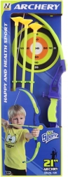 Entdecken Sie eine sichere und unterhaltsame Form des Bogenschießens für Kinder. Dieses Set enthält einen leichten Kunststoffbogen, der für kleine Hände entwickelt wurde, drei Pfeile mit Saugnapf für sicheres Schießen und eine Zielscheibe, mit der Kinder Präzision und Konzentration üben können. Verpackt in einer offenen Schachtel – ideal als Geschenk.