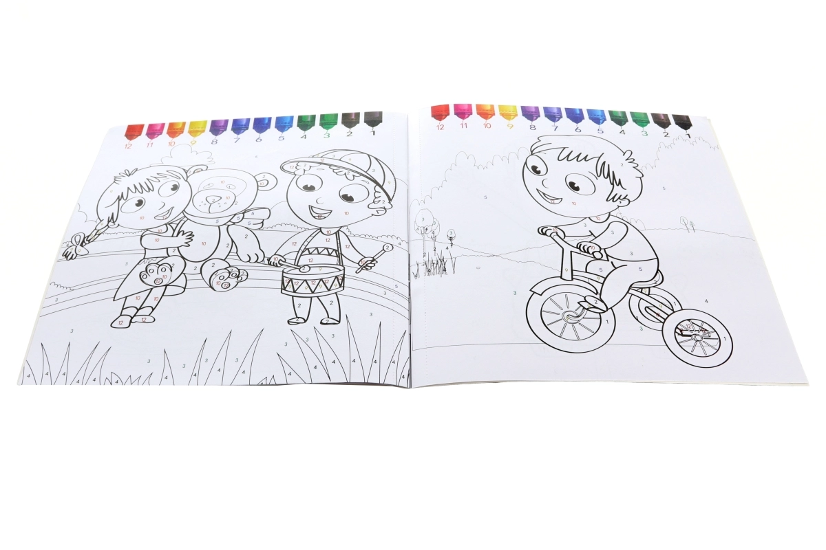 Entdecken Sie fröhliche Malbücher mit Malen nach Zahlen und einem umfangreichen Sticker-Set, die stundenlange kreative Unterhaltung bringen. Kinder malen dank der einfachen Zahlenlegende mühelos aus und lernen Farben zu kombinieren, während die Sticker zum Fertiggestalten der Bilder oder als Belohnung dienen.