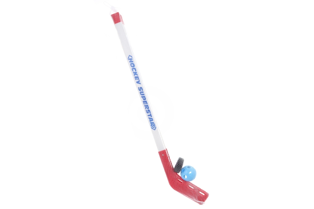 Unterhaltsames Set für kleine Eishockeyspieler: zwei leichte Hockeyschläger aus Kunststoff, Puck und Ball zum Spielen zu Hause und im Freien. Ideal für Kinder ab 3 Jahren, Schlägerlänge ca. 75 cm, verpackt in einem praktischen Netz.