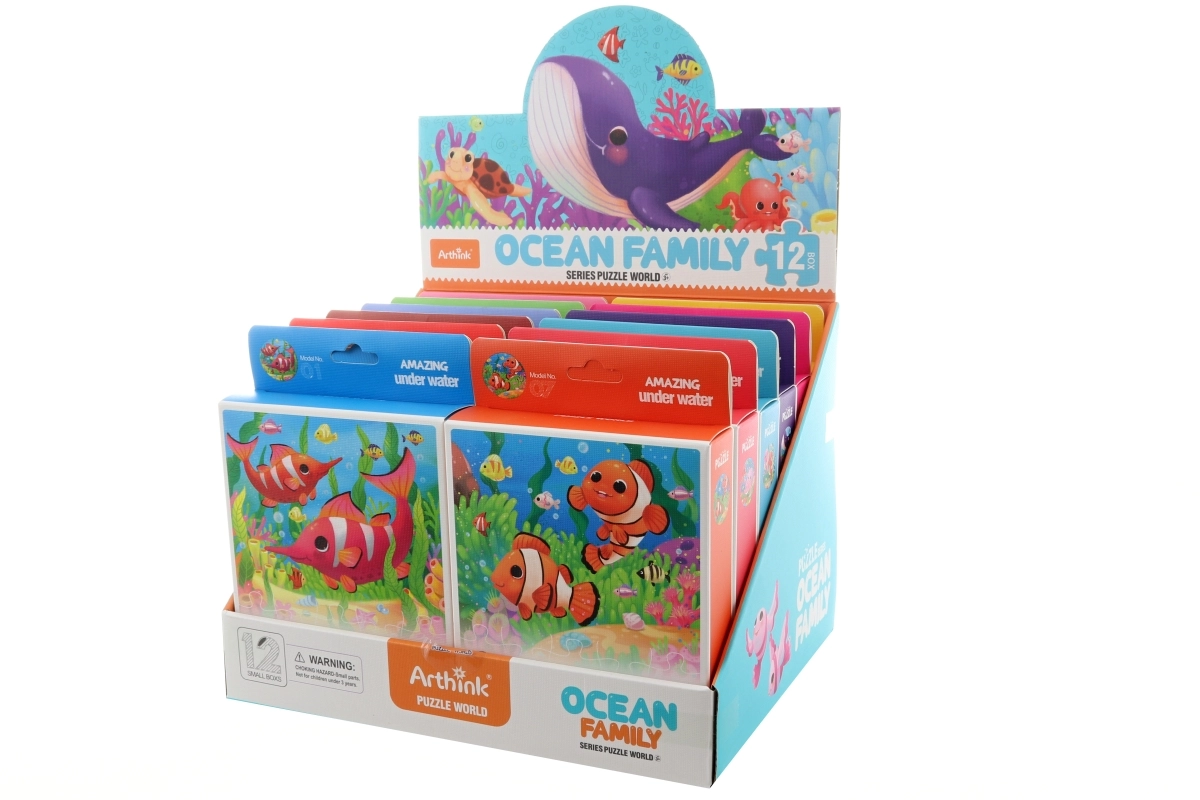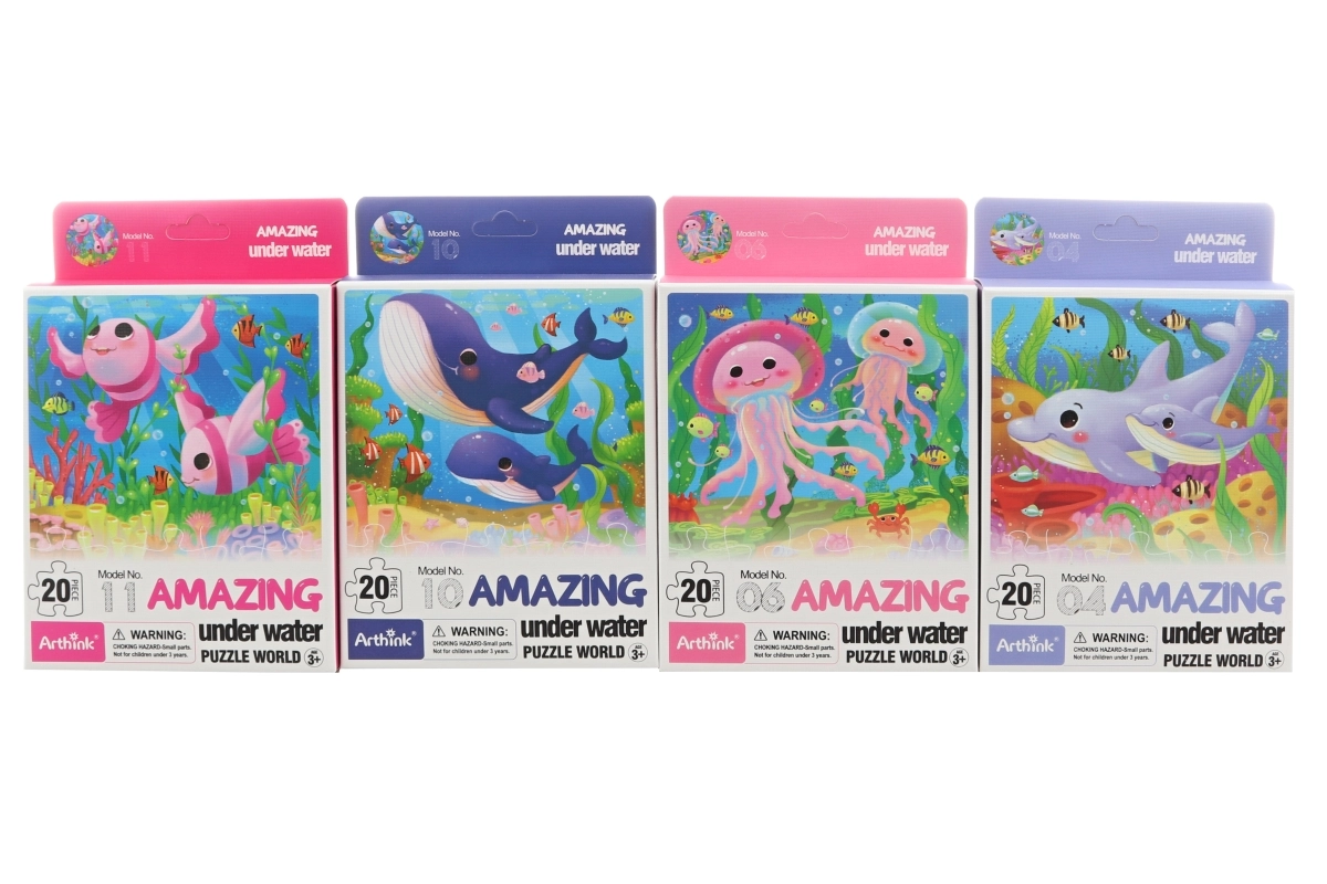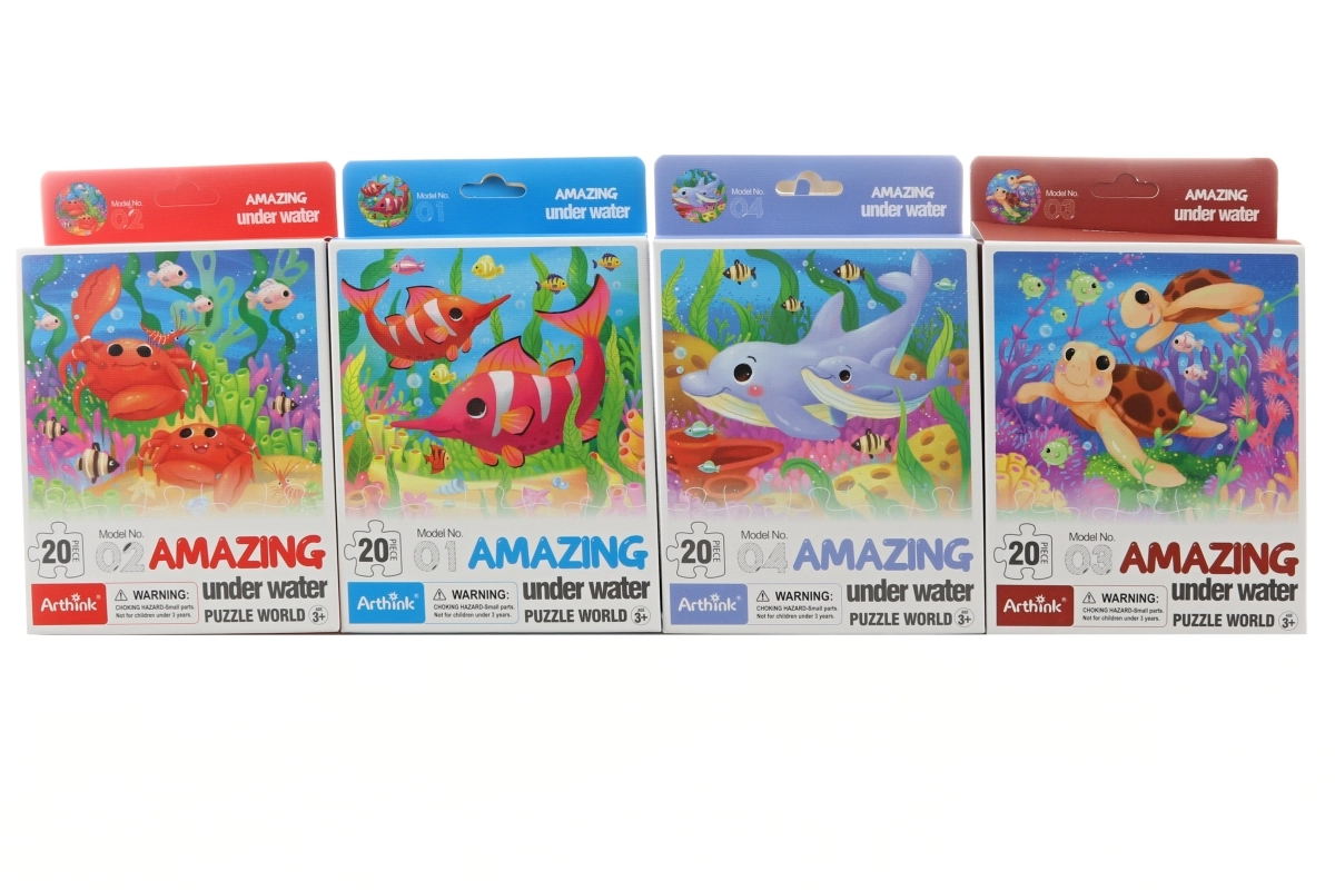 Nach dem Zusammensetzen hat das Puzzle kompakte Maße von 21 × 19 cm, sodass es leicht zu verstauen und zu transportieren ist. Aus 12 verfügbaren Motiven senden wir eine Variante gemäß aktueller Lagerverfügbarkeit; jedes zeigt attraktive Szenen aus dem Unterwasserleben.