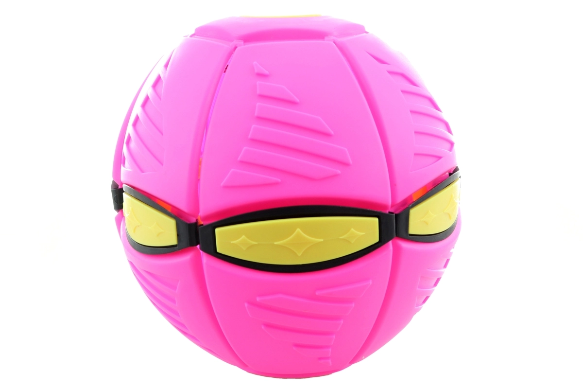 Eine unterhaltsame Wurfscheibe, die sich nach dem Aufprall in einen Ball verwandelt – begeistert Klein und Groß. Im Inneren befindet sich eine Feder und ein Saugnapf für eine zuverlässige Transformation. Hergestellt aus robustem Kunststoff und inklusive AG13-Batterie. Einfache Verwandlung von Scheibe zu Ball, Balldurchmesser 15 cm, Lichteffekte mit AG13-Batterie, geeignet ab 3 Jahren.