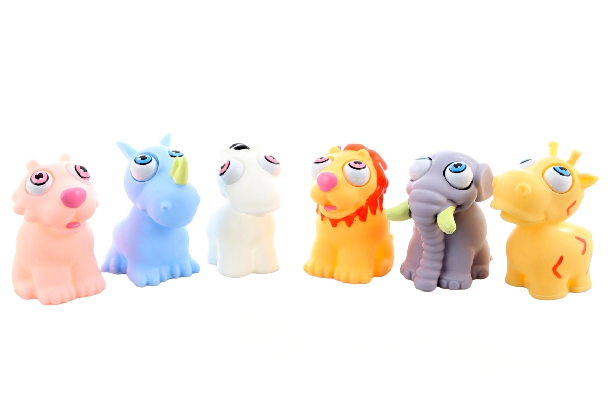 Entdecken Sie lustige, drückbare Tierchen mit großen Augen, deren Augen beim Drücken witzig hervorschnellen. Dank des weichen Kunststoffs lassen sie sich angenehm zusammendrücken und sind großartig zum Trainieren der Feinmotorik sowie als Anti-Stress-Spielzeug für Kinder ab 3 Jahren.
