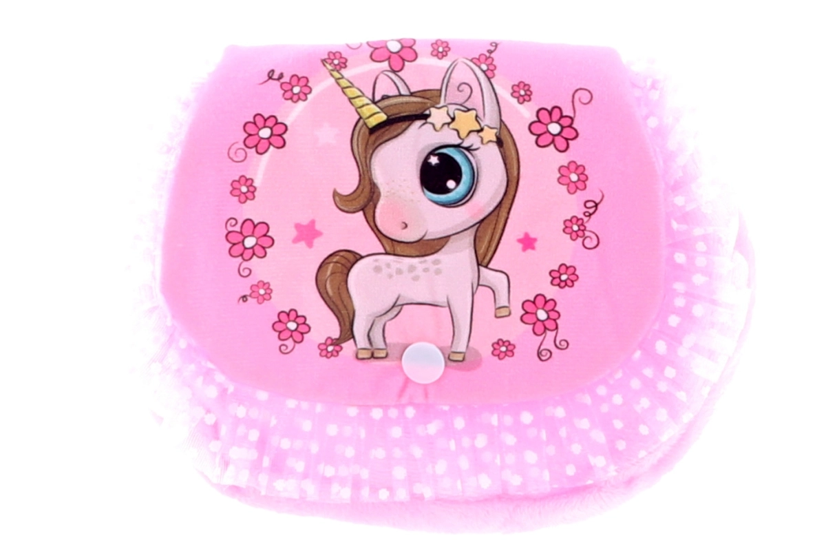 Süße Plüsch-Umhängetasche mit Einhornmotiv, ideal für Kleinigkeiten im Alltag. Sie verfügt über einen verstellbaren Riemen mit einer Länge von bis zu 2×50 cm, einen praktischen Reißverschluss und kompakte Maße von 19 × 15 × 2 cm. Leicht, weich und angenehm zu tragen.