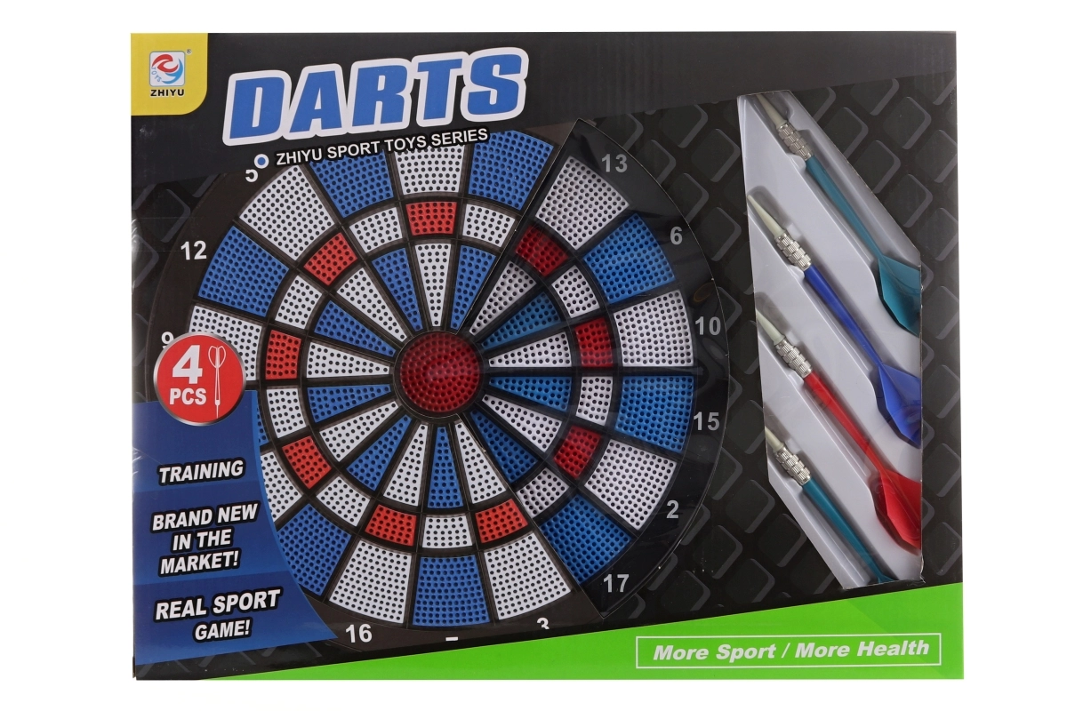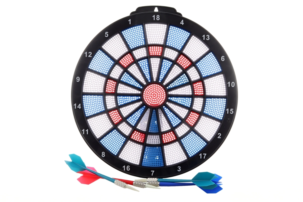 Dieses kompakte Set vereint Spaß und Präzisionstraining. Die Dartscheibe mit einem Durchmesser von ca. 28 cm ist ideal für Einsteiger und Gelegenheitsspieler. Die vier beigefügten Pfeile mit Kunststoffkörper und Gewicht aus Metall bieten einen ausgewogenen Flug und einen komfortablen Griff.