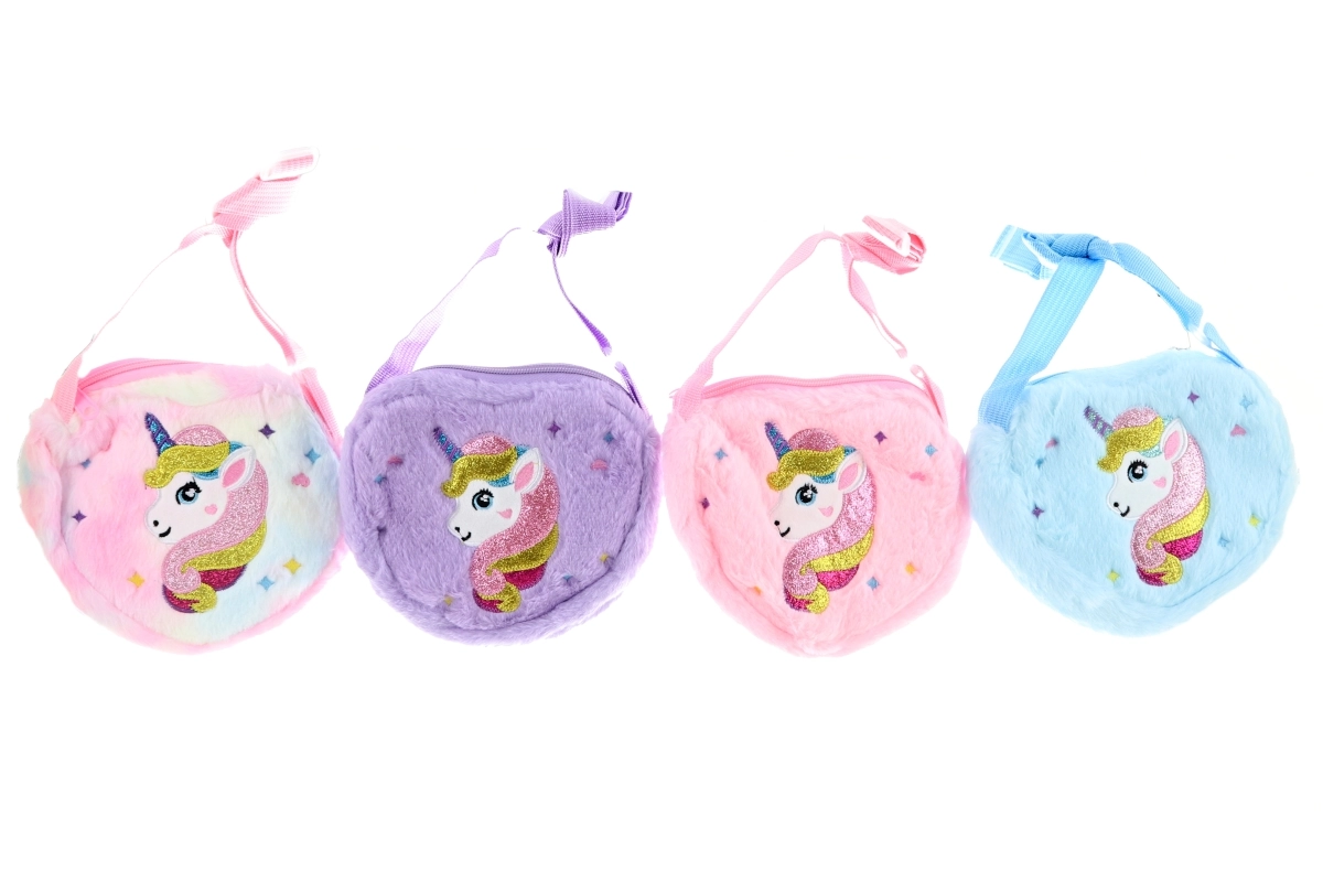 Diese Einhorn-Kindertasche ist leicht, angenehm weich und trägt sich wunderbar. Der Reißverschluss hält alle Kleinigkeiten sicher im Inneren, während der verstellbare Riemen komfortables Tragen über der Schulter ermöglicht. Dank der kompakten Maße passt sie gut in kleine Hände und auf schmale Kinderschultern.