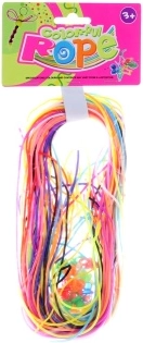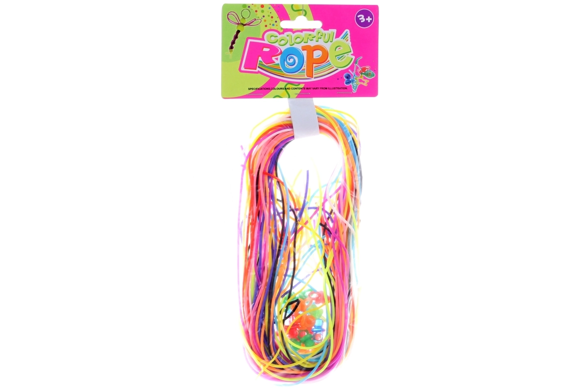 Der Lieferumfang umfasst Gummischnüre zum Flechten und plastische Accessoires in Schnullerform, die den Arbeiten eine verspielte Optik verleihen. Das Set ist leicht und kompakt, verpackt im Beutel – ideal für unterwegs und für das Basteln zu Hause.