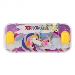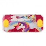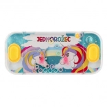 Das Spiel passt in die Tasche, benötigt keine Batterien und beschäftigt zu Hause wie unterwegs. Jede Einheit wird in einem der verfügbaren Einhornmotive geliefert.