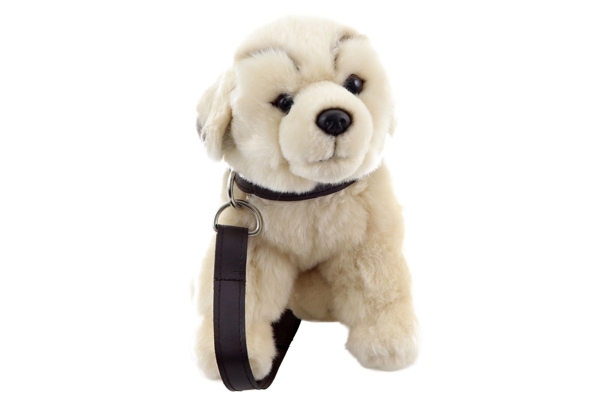 Weicher und sicherer Plüschwelpe mit Sitzposition und mitgelieferter Leine fördert Empathie, Fürsorge und Vorstellungskraft. Dank der kompakten Maße nehmen Kinder ihn überallhin mit – in den Kinderwagen, auf Reisen und ins Bettchen.