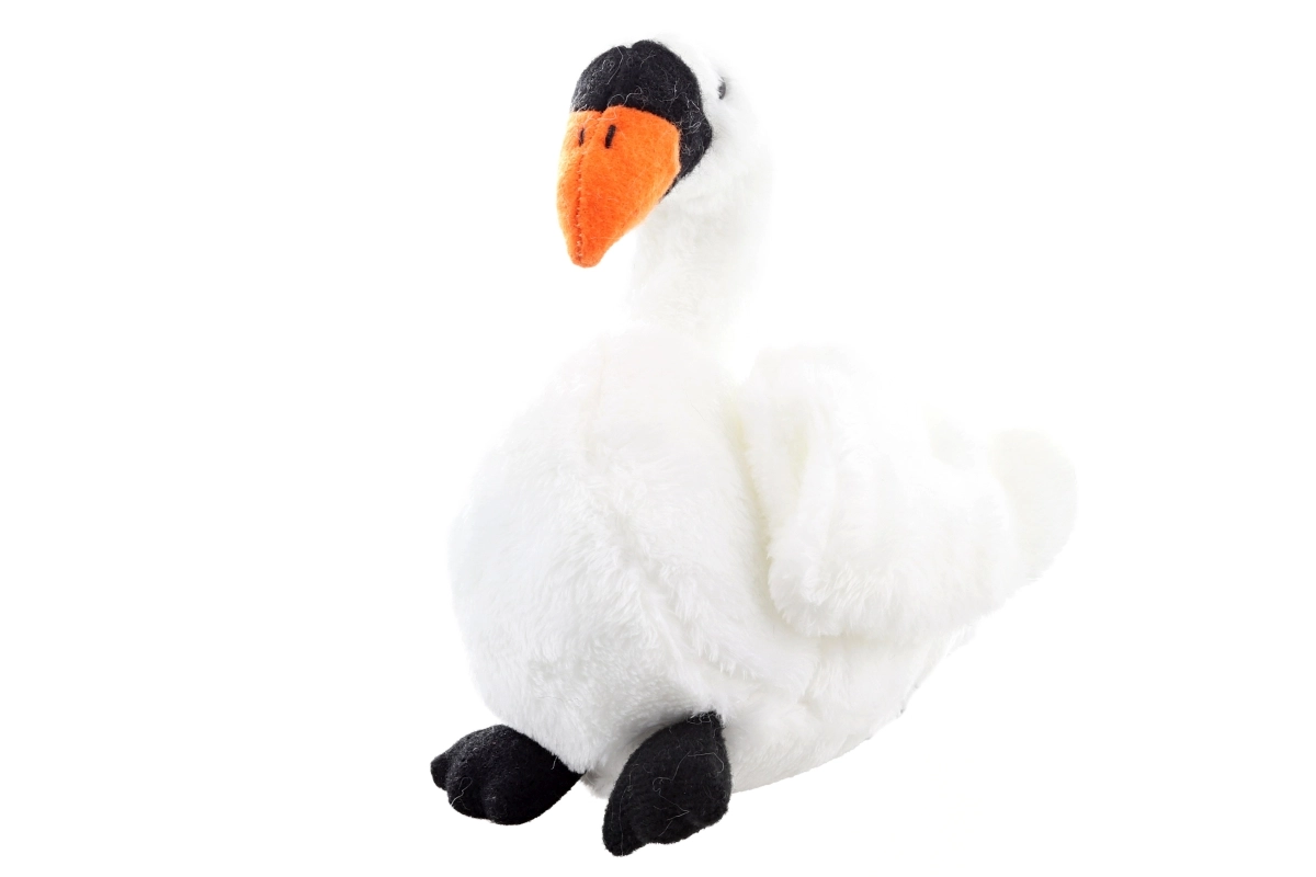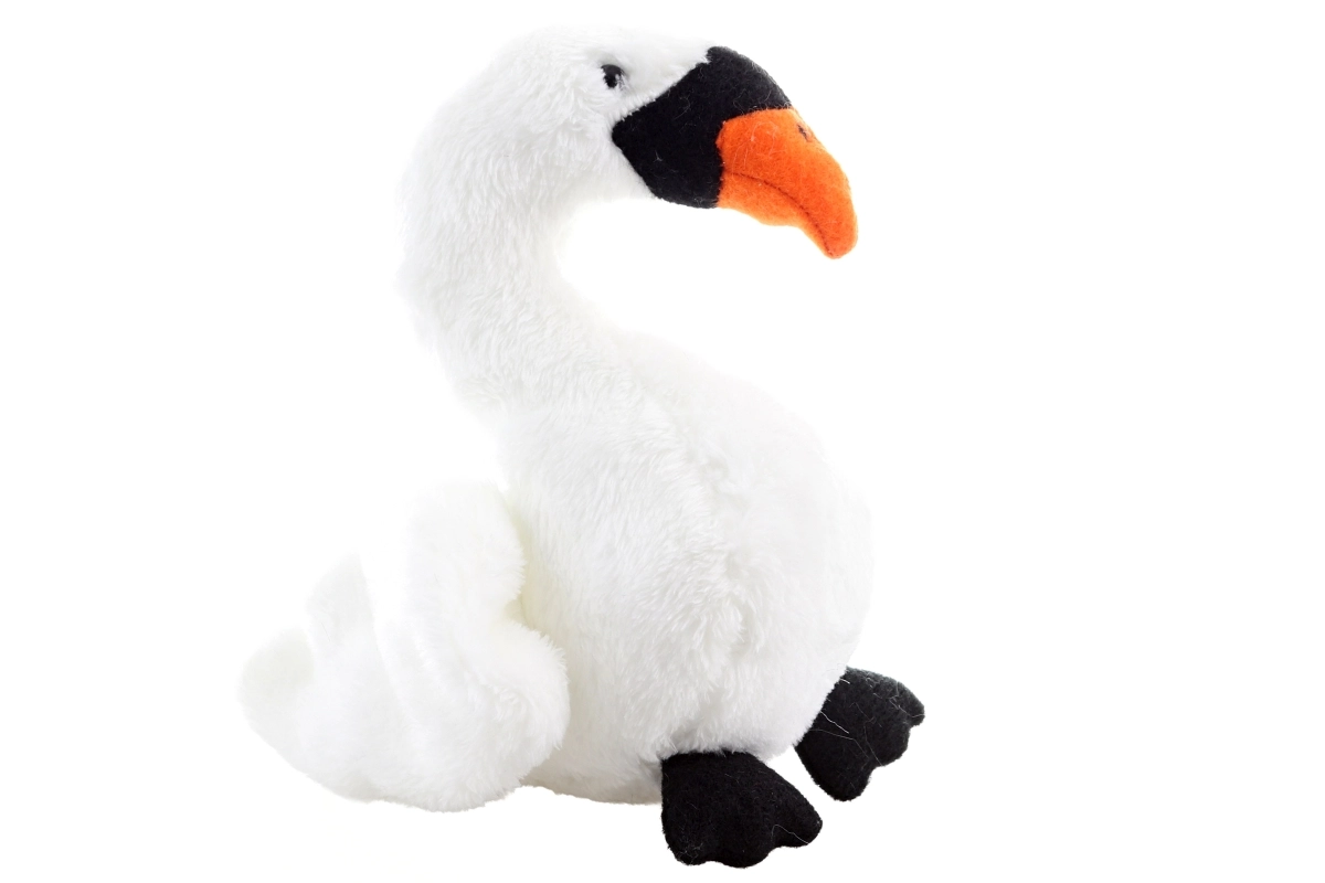 Dieser zarte Plüsch-Schwan mit orangem Schnabel und schwarzen Details ist ein toller Gefährte für Babys und größere Kinder. Die kompakten Maße von 13 × 13 × 9 cm ermöglichen einfaches Greifen und Mitnehmen – ideal für Zuhause, den Kinderwagen und auf Reisen.