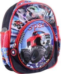 Leichter und kompakter Kinder-Rucksack mit Monstertruck-Motiv – ideal für Kindergarten, Ausflüge und die Freizeit. Er bietet eine geformte Vorderseite, mehrere Reißverschlusstaschen sowie seitliche Netztaschen für die Trinkflasche. Dank gepolsterter Schultergurte ist er den ganzen Tag bequem zu tragen.