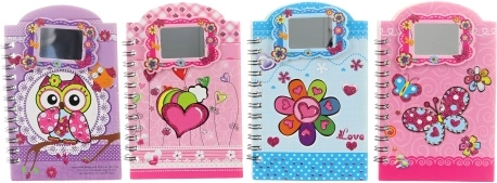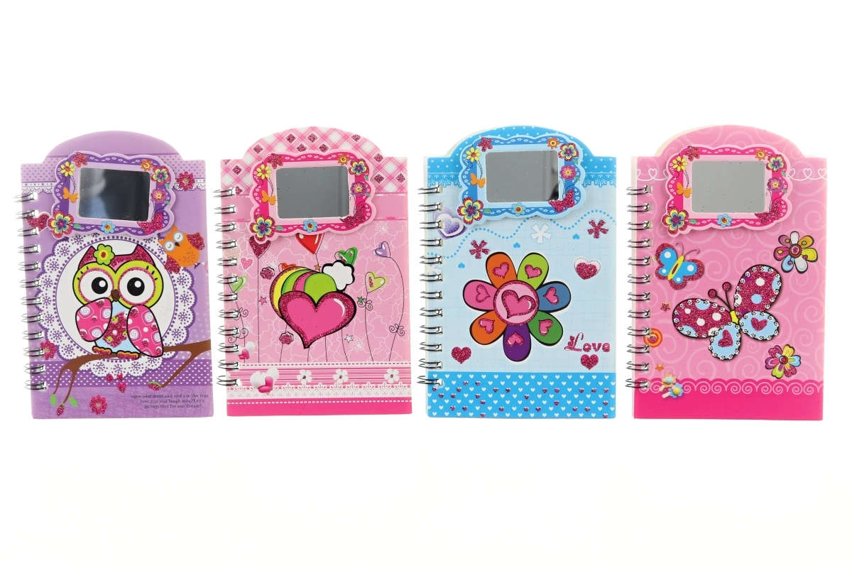 Dieses stylische Mädchennotizbuch ist ein toller Begleiter für Notizen, Tagebucheinträge und kleine Ideen. Die dekorativen Motive mit Herzen, Eulen, Blumen und Schmetterlingen sowie der praktische Spiegel auf dem Umschlag machen es zu einem originellen Accessoire für jeden Tag.