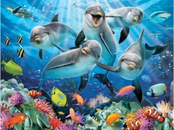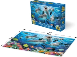 Entdecken Sie eine Beschäftigung, die Geduld, Konzentration und Feinmotorik fördert. Dieses 3D-Puzzle mit Delfinmotiv bietet eine farbenfrohe Unterwasserszene, die dank des lENTIKULARen 3D-Effekts plastisch und dynamisch wirkt. Das fertige Bild hat das kompakte Maß 31 × 23 cm und eignet sich hervorragend zum Ausstellen im Kinderzimmer.