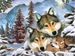 Die lentikulare Technologie erzeugt einen realistischen räumlichen Eindruck, durch den die Wölfe vor Ihren Augen lebendig werden.