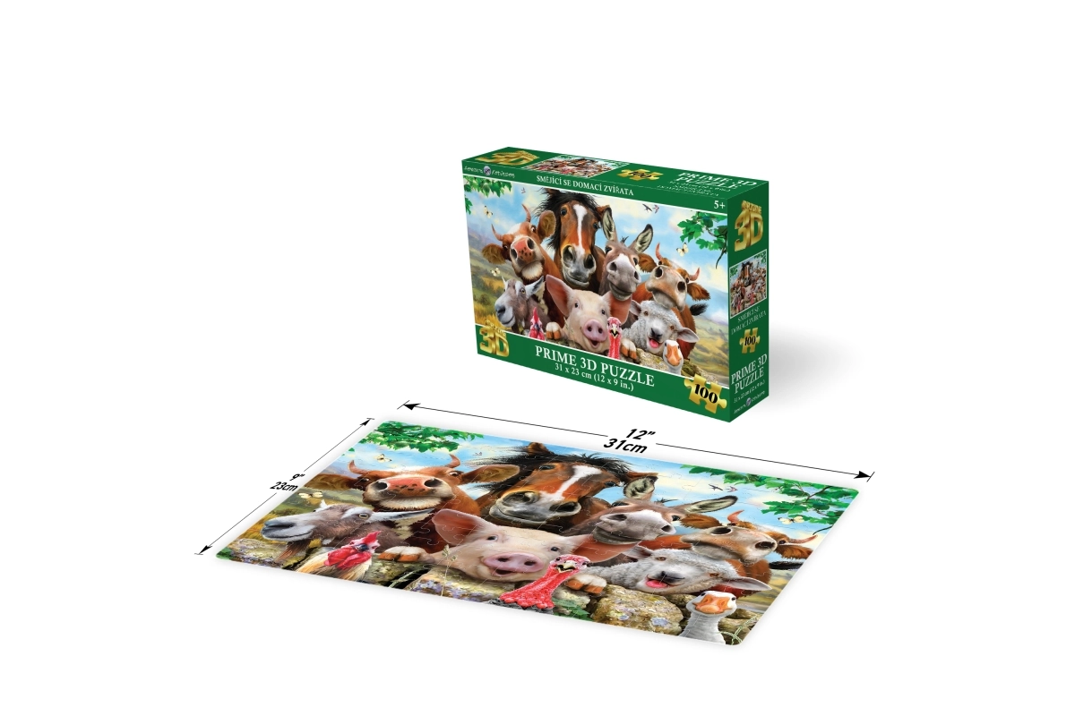 Entdecken Sie den Puzzlespaß mit dem 3D-Puzzle Lachende Haustiere. Dank 100 stabilen Teilen entwickeln Kinder Feinmotorik, Geduld und räumliches Vorstellungsvermögen. Das fertige Bild mit den Maßen 31 × 23 cm ist ideal, um es im Kinderzimmer auszustellen.