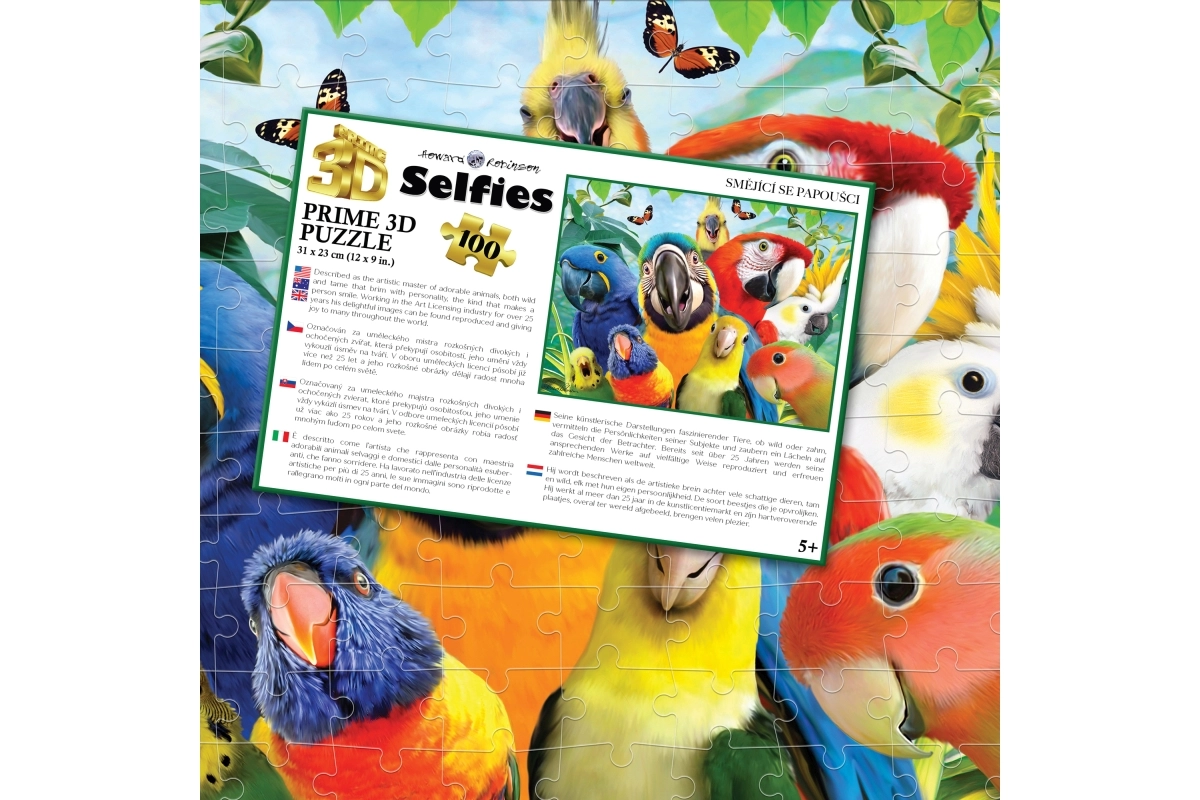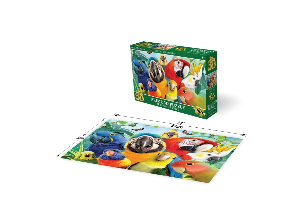 Tauchen Sie ein in die Welt tropischer Farben mit dem 3D-Puzzle Lachende Papageien. Dank 100 hochwertiger Teile und einer Größe des fertigen Bildes von 31 × 23 cm ist das Puzzeln ideal für den Nachmittagsspaß und die Förderung kindlicher Fähigkeiten. Die Puzzleteile passen präzise ineinander, und das fröhliche Papageienmotiv begeistert jeden kleinen Kreativen.