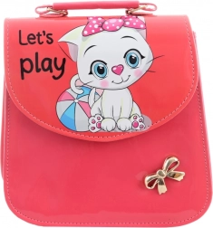 Die attraktive rosafarbene, glänzende Oberfläche und das niedliche Kätzchenmotiv „Let’s play“ ziehen alle Blicke auf sich und verleihen dem Outfit einen verspielten Stil.