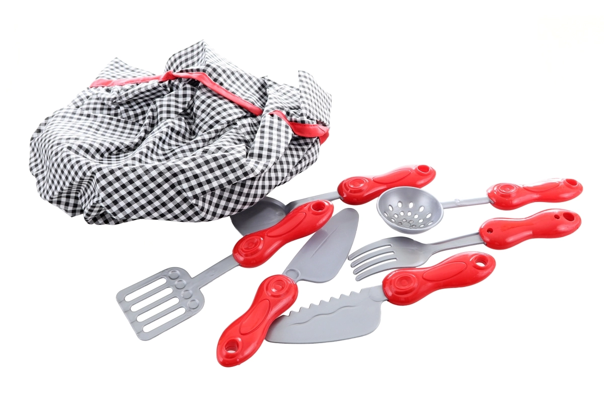 Küchenzubehör aus Kunststoff mit ergonomischen Griffen, entwickelt für kleine Hände und sicheres Spielen.