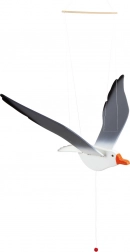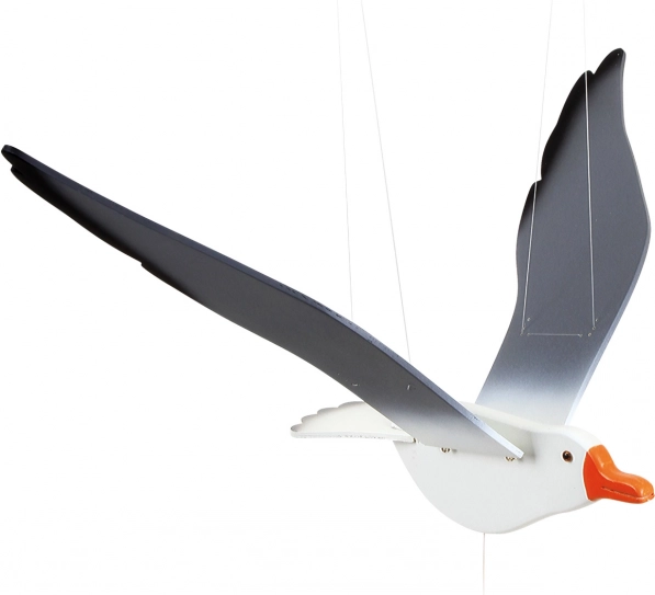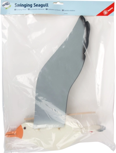 Durch Ziehen an der Schnur mit einem Perlenanhänger können Sie ihre Flügel in Bewegung setzen und den Flug der Möwe simulieren.