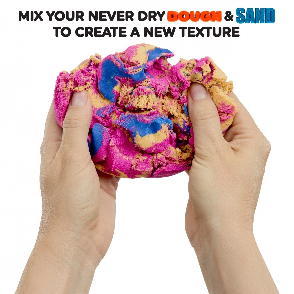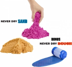 Die spezielle Zusammensetzung sorgt dafür, dass der Sand stets geschmeidig und formbar bleibt – drücken, schneiden und formen ohne Zeitlimit.