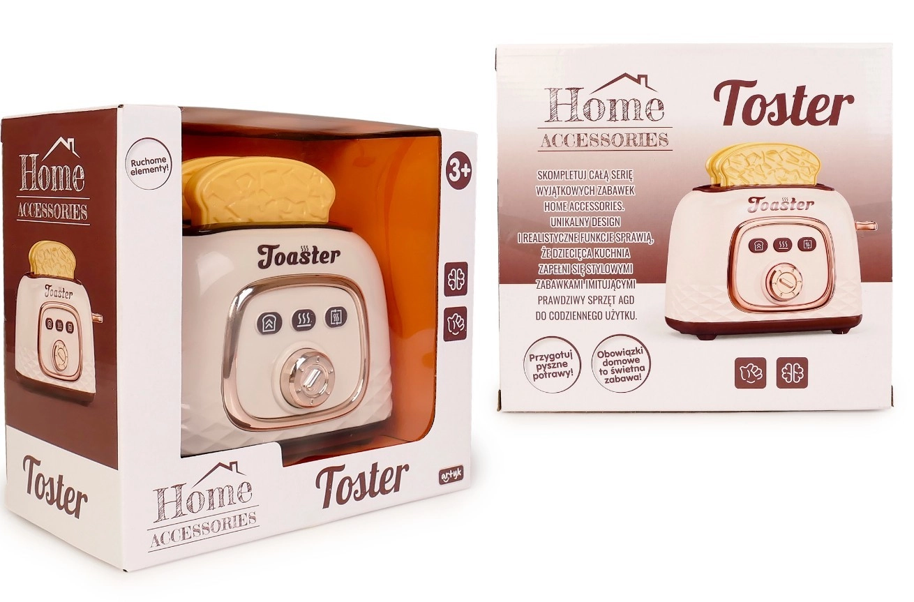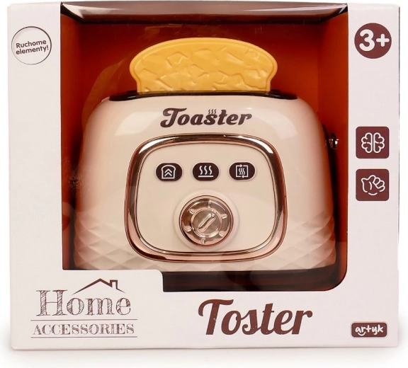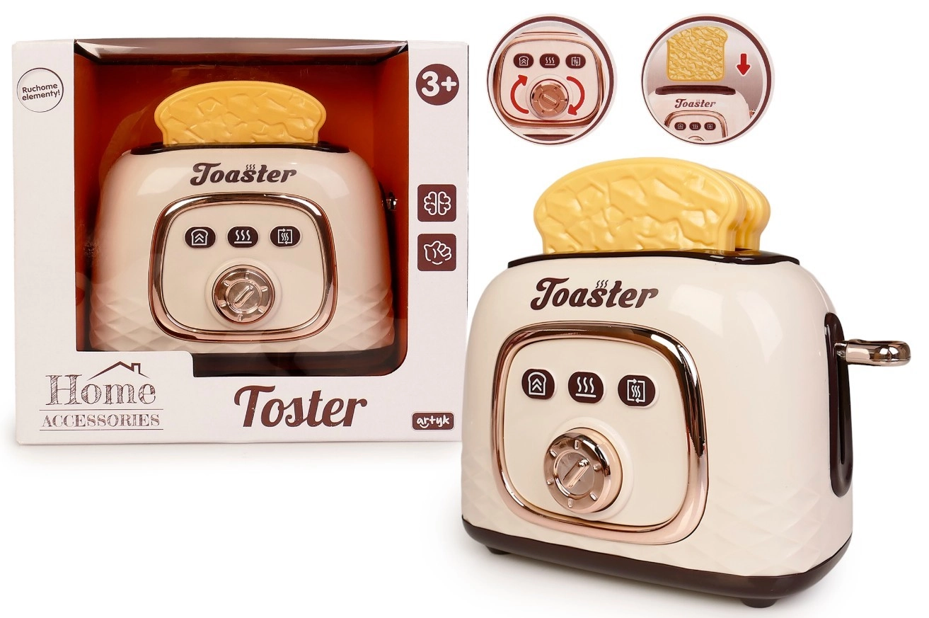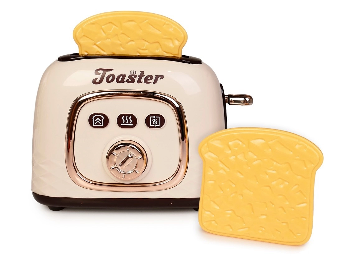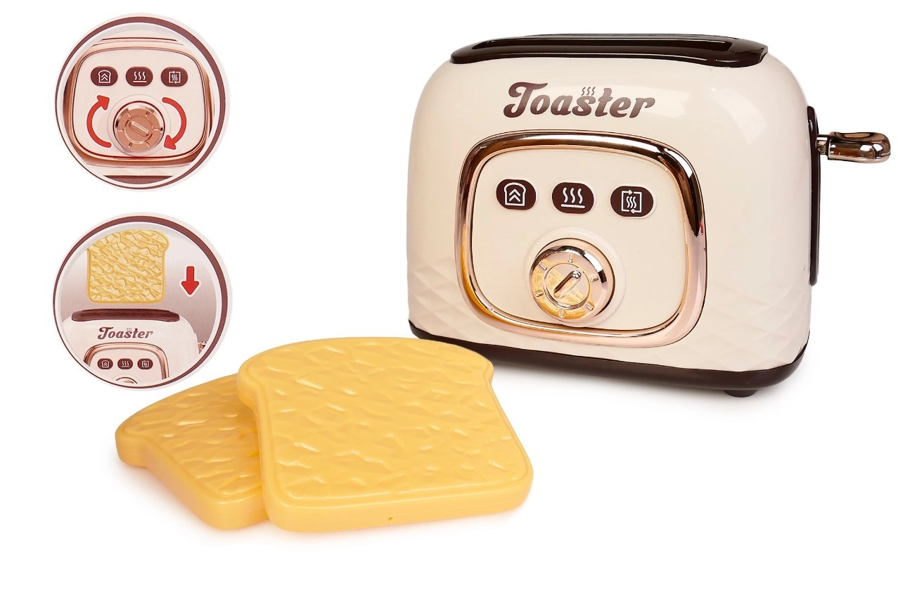 Der Kinder-Toaster mit Toastscheiben ist die ideale Ergänzung für jede Kinderküche. Dank der einfachen Bedienung genießen Kinder die realistische Zubereitung des Frühstücks – sie drücken die seitliche Taste, die Toasts fahren herunter und springen nach kurzer Zeit von selbst heraus.