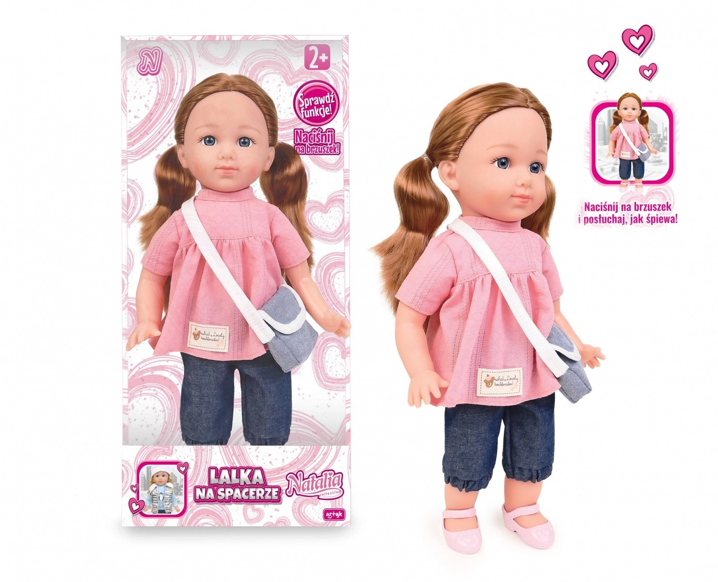 Die niedliche funktionelle Puppe Natalia in Tunika mit einer Höhe von 36 cm erfreut jedes Kind. Beim Drücken des Bauches spricht sie Polnisch und singt 2 Lieder. Dank realistischer Details, beweglicher Gliedmaßen und eines stylischen Outfits ist sie ideal zur Förderung der Fantasie und für Pflege-Rollenspiele.
