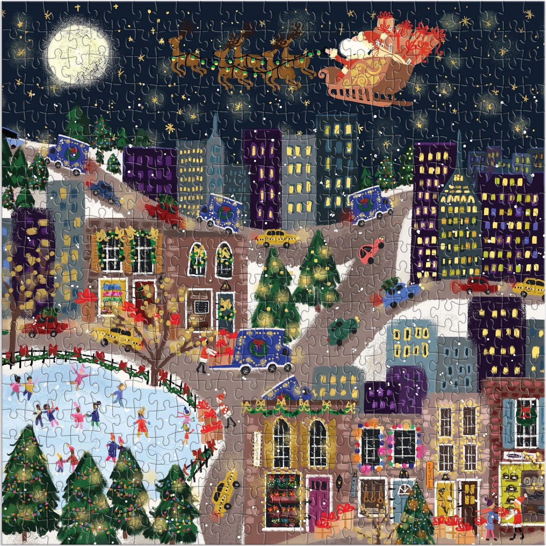 Das metallische quadratische Puzzle von GALISON mit dem Motiv Geschenkstädtchen bietet eine Kombination aus hochwertigem Druck, präzise geschnittenen Teilen und attraktivem Glanz. Das quadratische Format kommt an der Wand ebenso wie im Regal hervorragend zur Geltung und begeistert sowohl Einsteiger als auch erfahrene Puzzler.