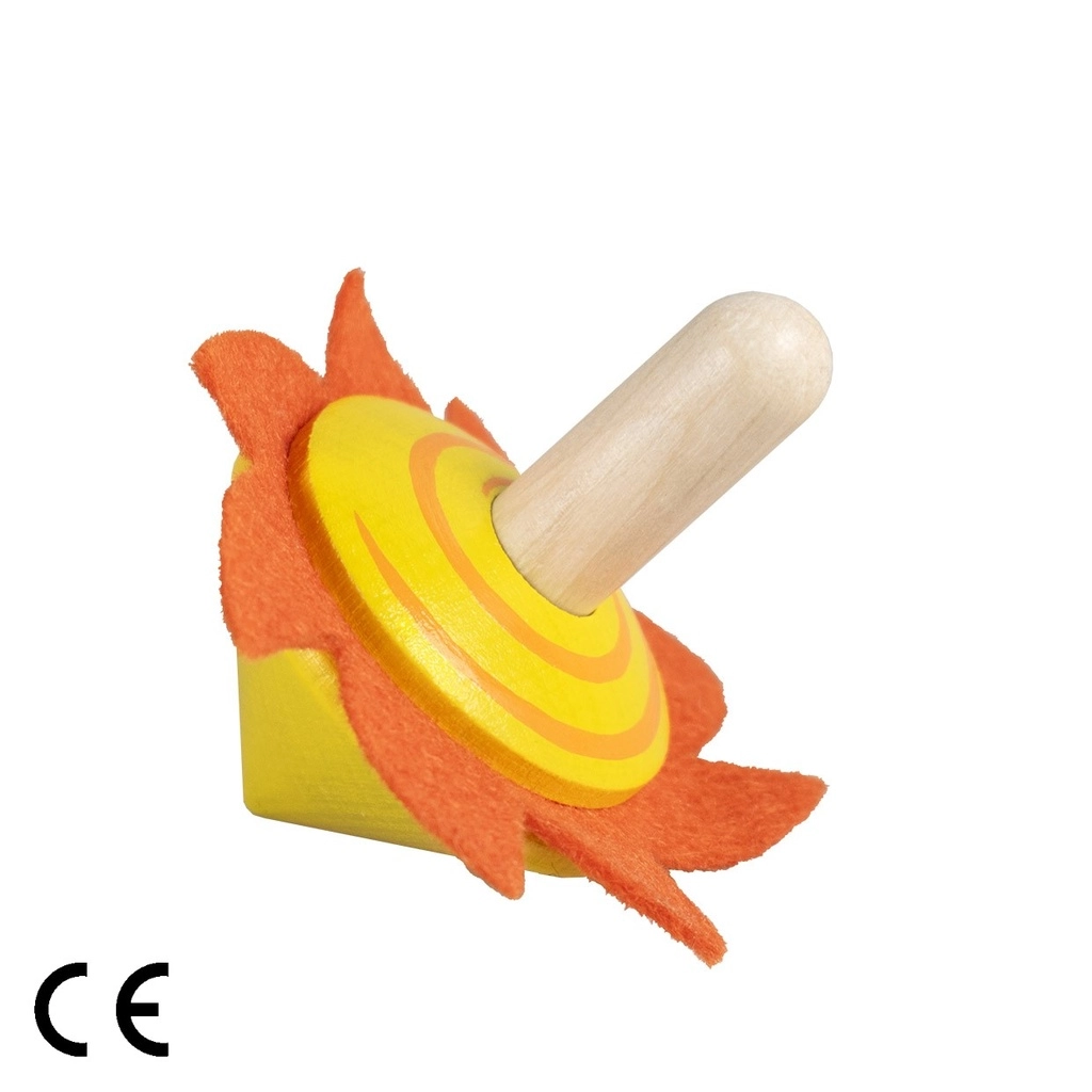 Beim Spielen trainieren Kinder spielerisch die Feinmotorik der Finger, die Hand-Auge-Koordination sowie das Gespür für Geschwindigkeit und Drehrichtung. Der Kreisel ist aus hochwertigem Holz gefertigt und mit einem Filzelement ergänzt, was für eine angenehme Haptik und lange Lebensdauer sorgt.