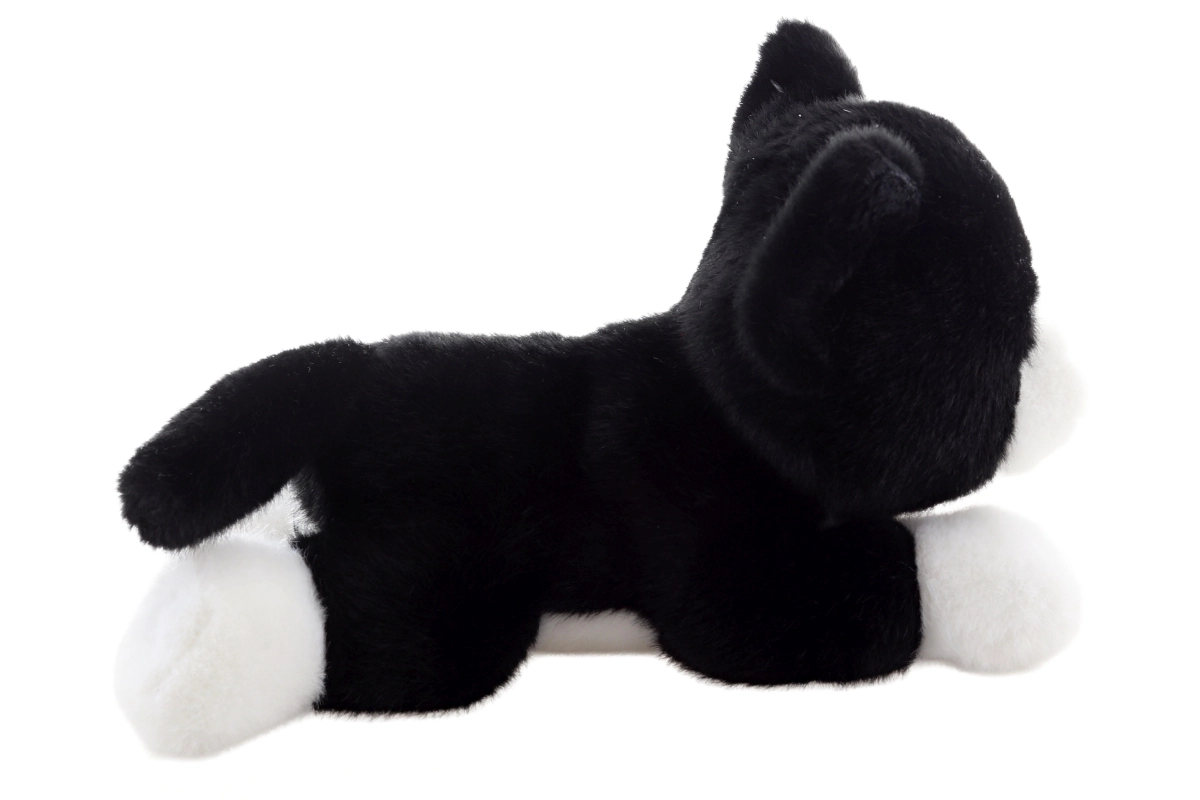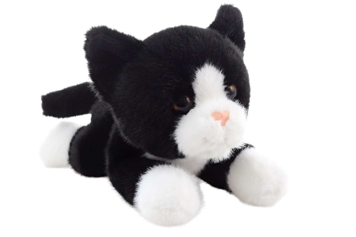 Kontrastierendes schwarz‑weißes Fell, eine rosa Nase und gestickte Details verleihen den Look eines echten Kätzchens.