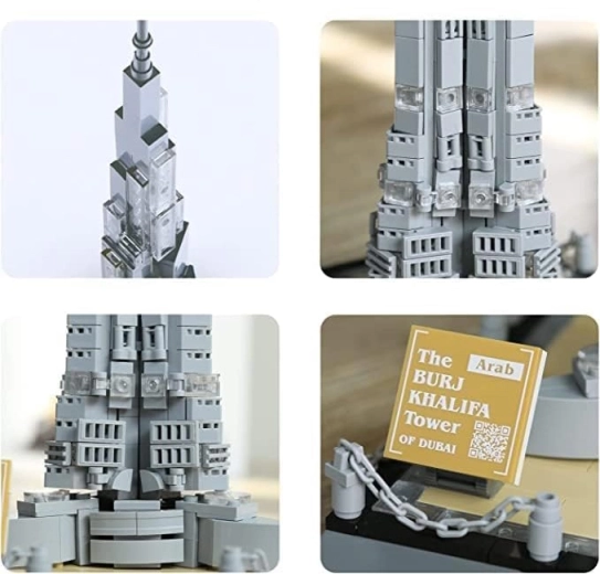 Dieses Bauset aus der Gebäudereihe ermöglicht den Bau des berühmten Wahrzeichens von Dubai – BURJ KHALIFA. Aus 555 Elementen entsteht ein stabiler und realistischer Modellbau, der sowohl im Regal als auch auf dem Schreibtisch beeindruckt. Eine einfache bebilderte Anleitung erleichtert das schrittweise Zusammenbauen.