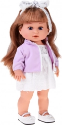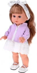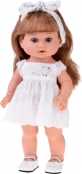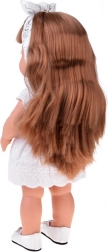 Diese stylische Puppe ist eine tolle Begleiterin für den täglichen Spielspaß. Dank der langen, dichten Haare und der beiliegenden Bürste genießen Kinder Kämmen, Flechten und Stylen. Das elegante Outfit mit Spitzendetails, weißen Schühchen und Haarband mit Schleife unterstreicht den modernen Look der Puppe.