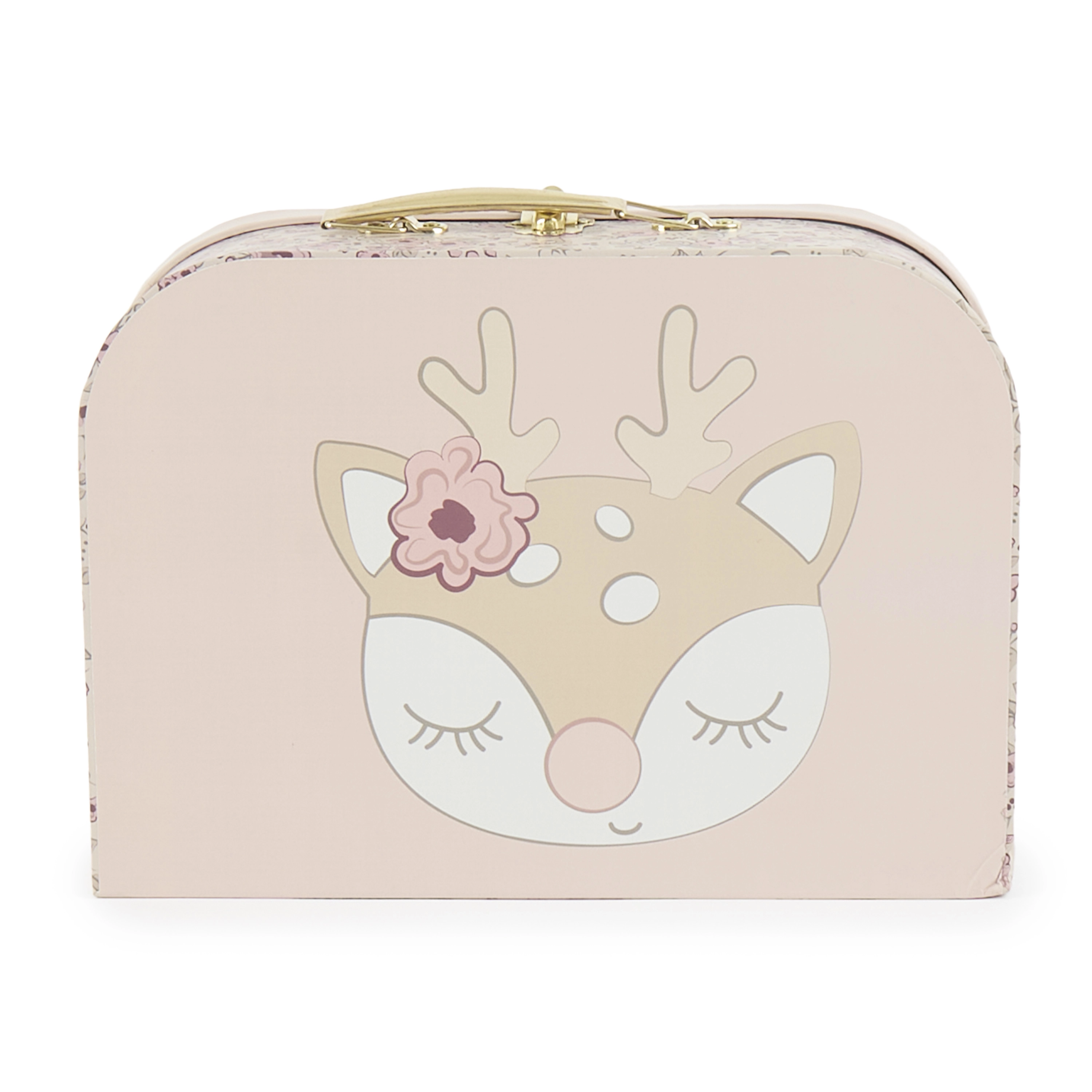 Das Set aus drei dekorativen Koffern in zarten Pastelltönen mit dem Motiv des Rehkitzes Ella macht das Aufbewahren von Spielzeug und Schätzen zum Vergnügen. Kinder lieben das schöne Design, Eltern schätzen die praktische Ausführung mit hochwertigen Metallbeschlägen und bequemem Griff.