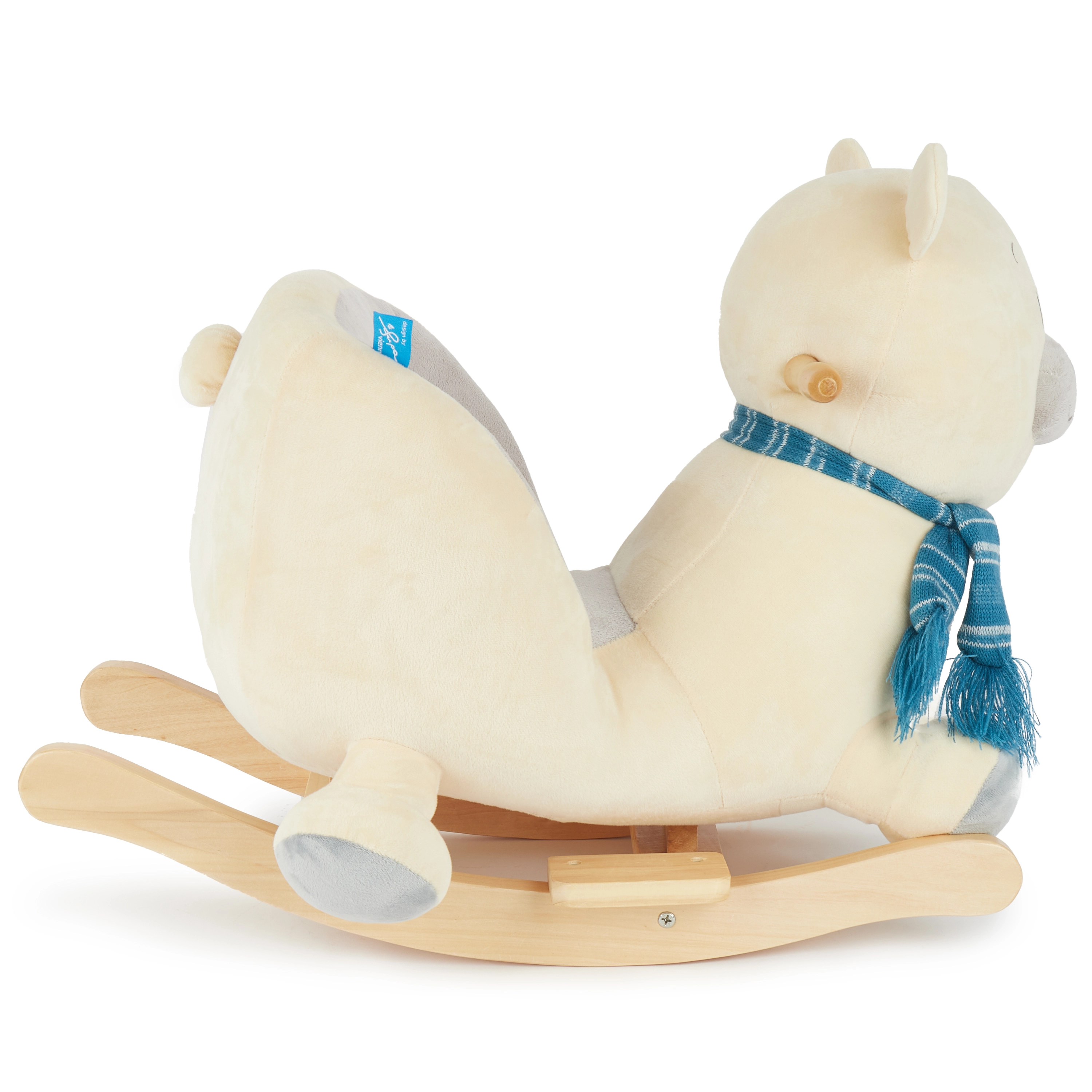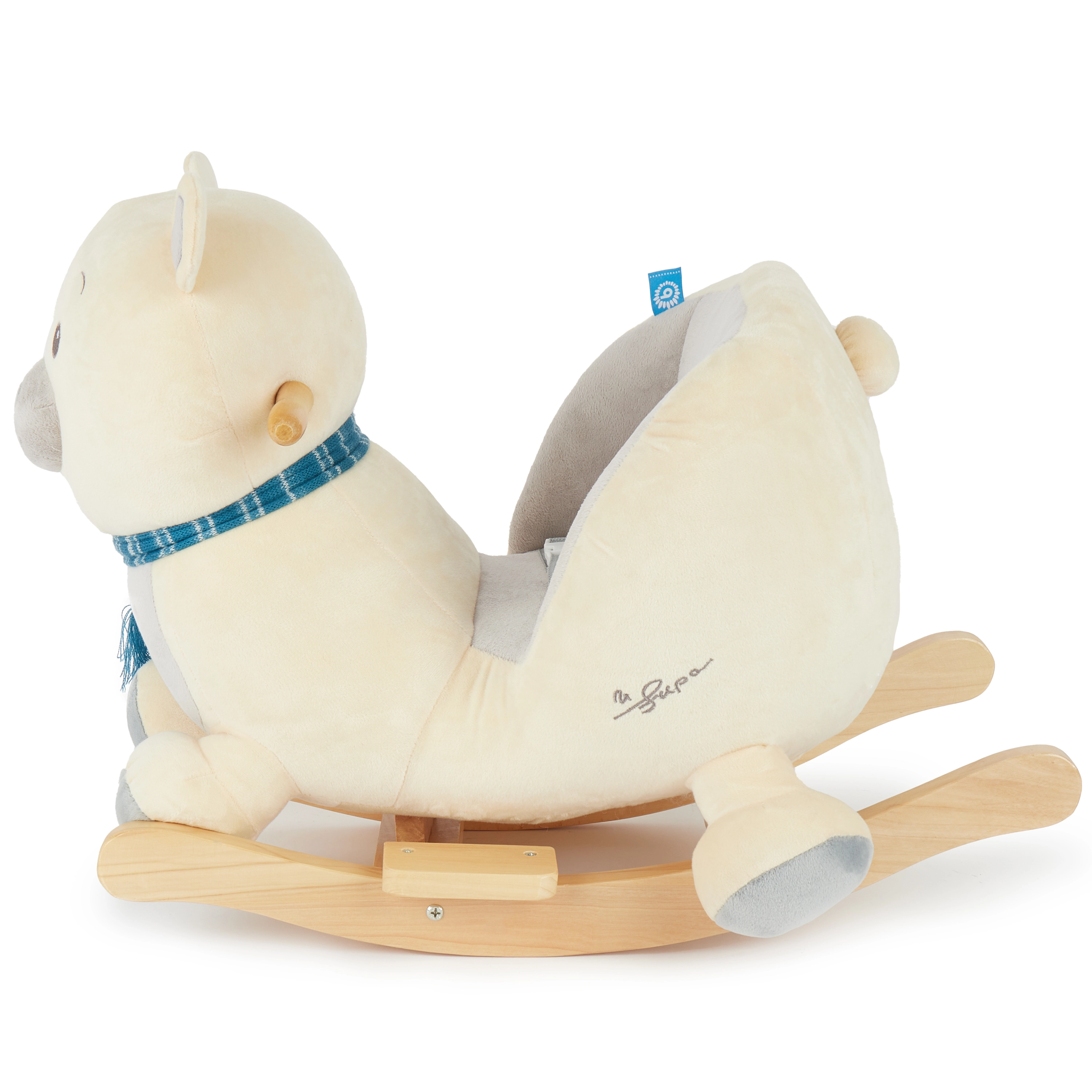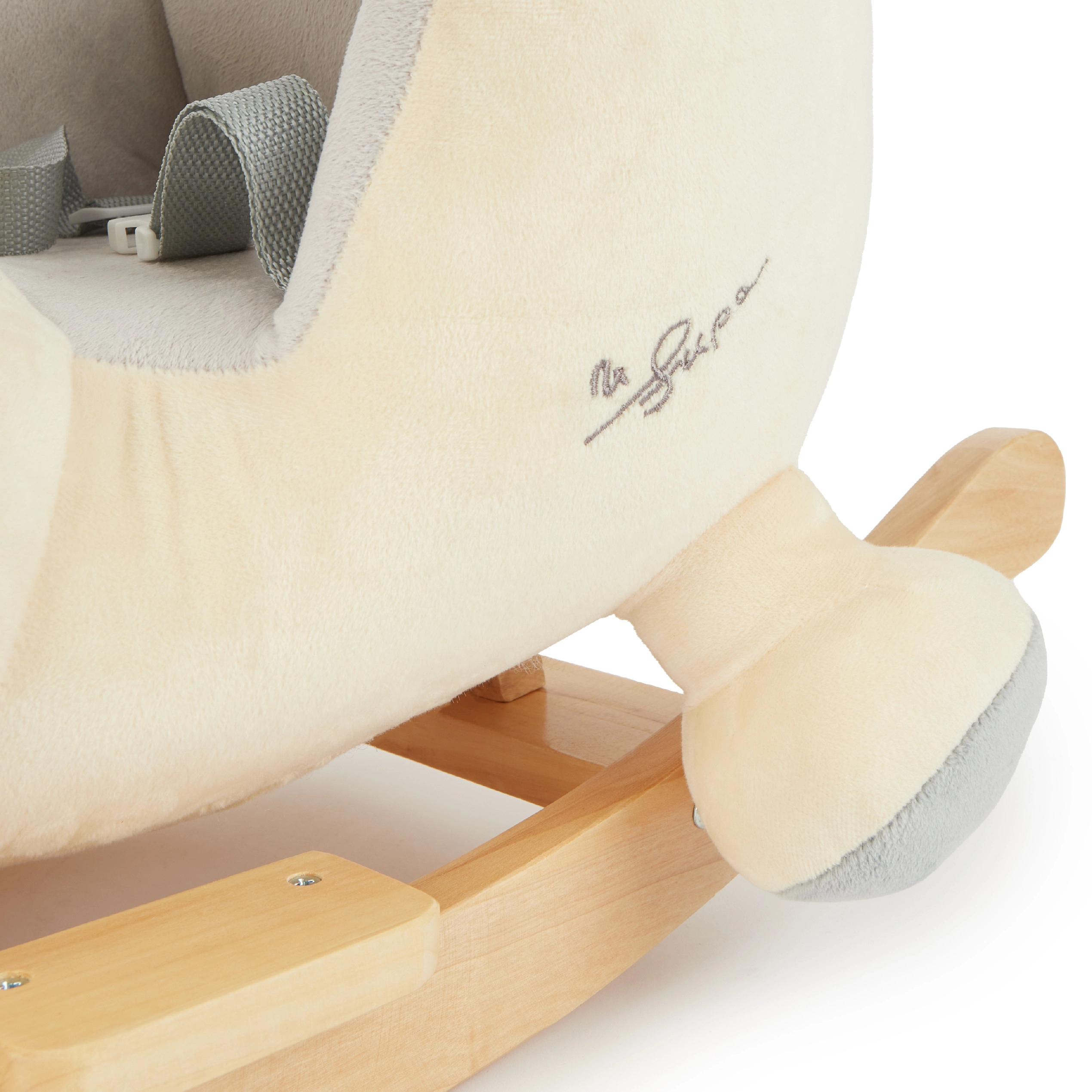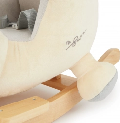 Die massive Holzbasis mit Kippschutz und der weiche, komfortabel gepolsterte Sitz mit Sicherheitsgurt sorgen für maximale Sicherheit, selbst für die Kleinsten. Die samtige Plüschoberfläche macht den neuen Freund schnell zum Liebling.
