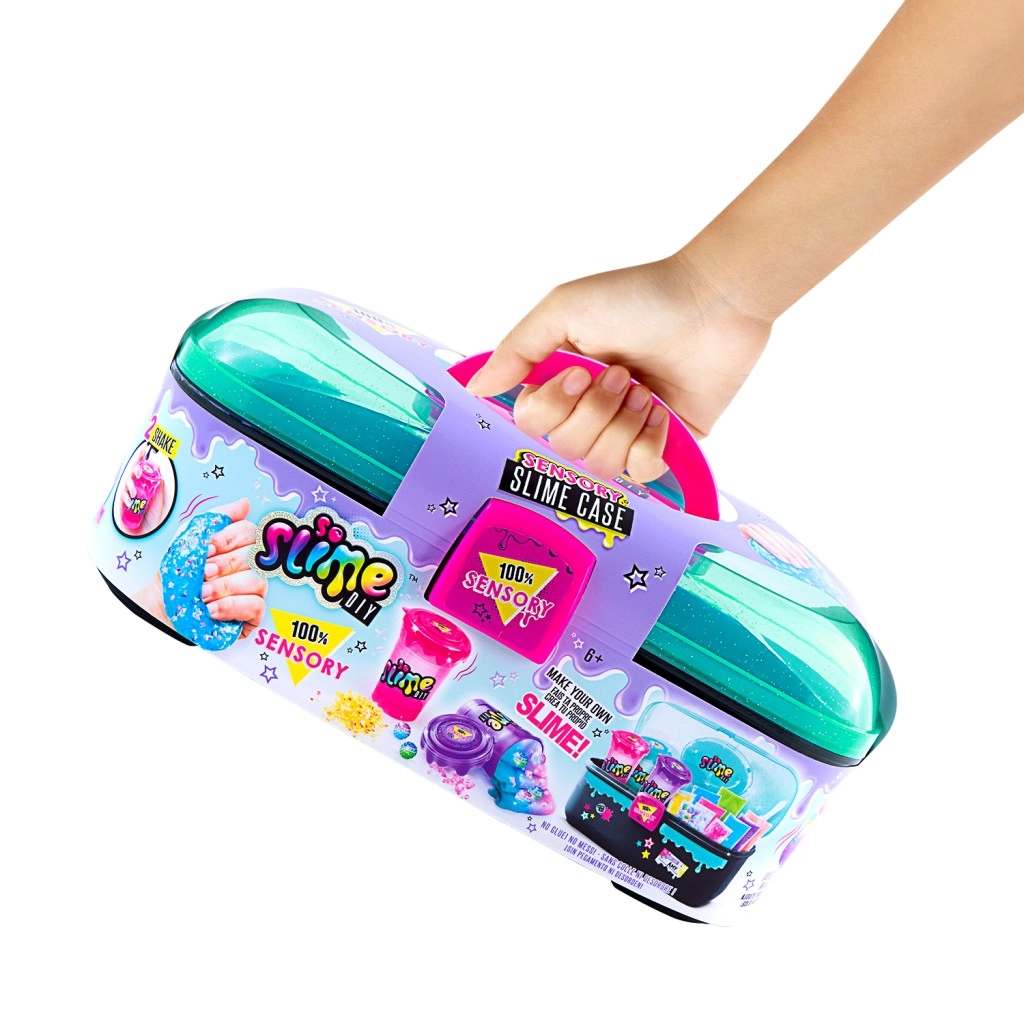 Der kompakte SO SLIME Koffer enthält alles, was Kinder für die sofortige Herstellung farbenfroher und glitzernder Schleime benötigen. In wenigen einfachen Schritten entstehen originelle Kombinationen aus Farben und Texturen, die mit beiliegenden Dekorationen verziert werden können.