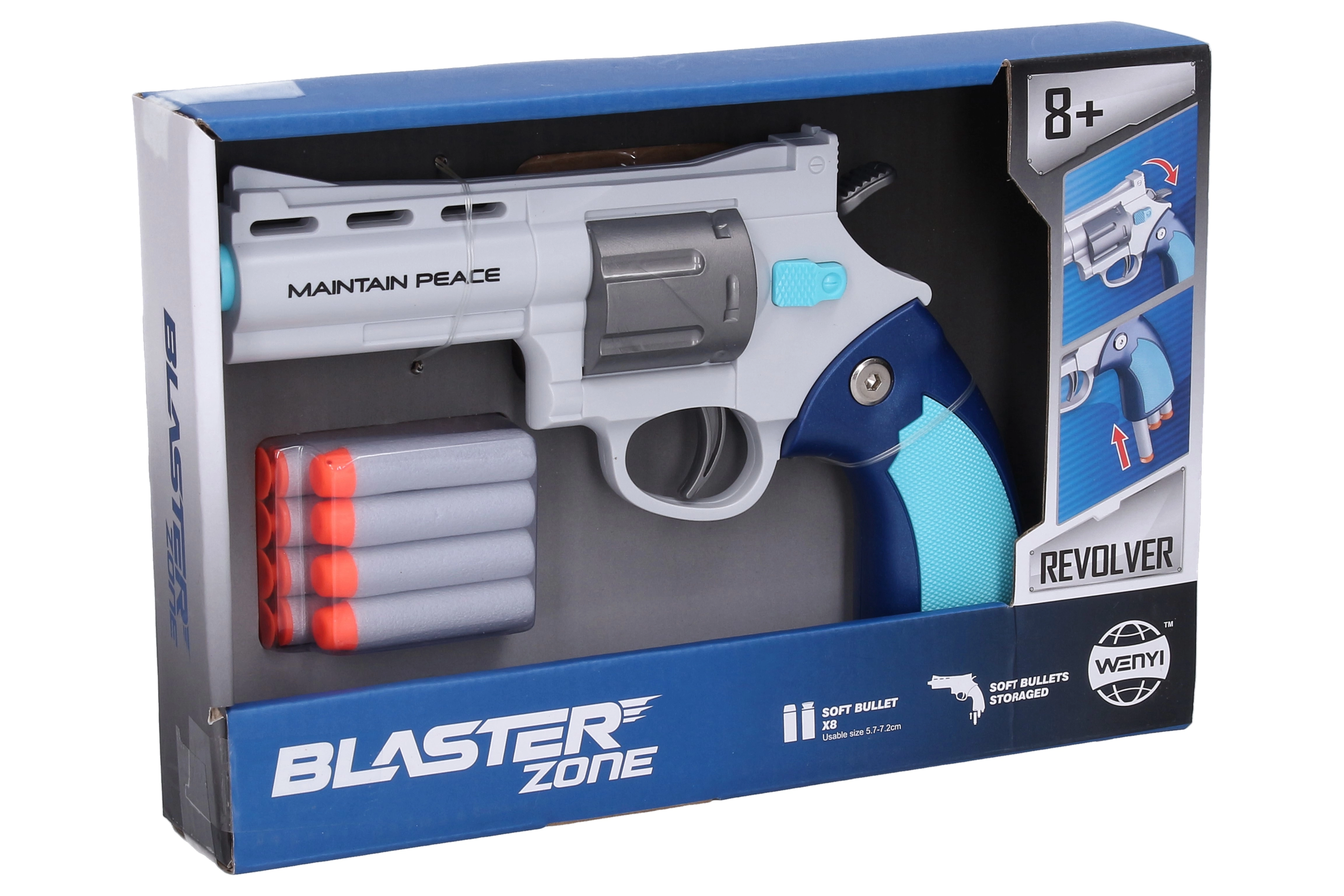Genießen Sie actionreichen Spaß mit einem sicheren Spielzeug, das Präzision und Konzentration fördert. Der Schaumstoffrevolver ist ideal für den Einsatz zu Hause und im Freien. Dank der zwei Geschosstypen können Kinder verschiedene Spielszenarien ausprobieren – von schnellem Schießen bis zum Anhaften der Pfeile auf glatten Oberflächen.