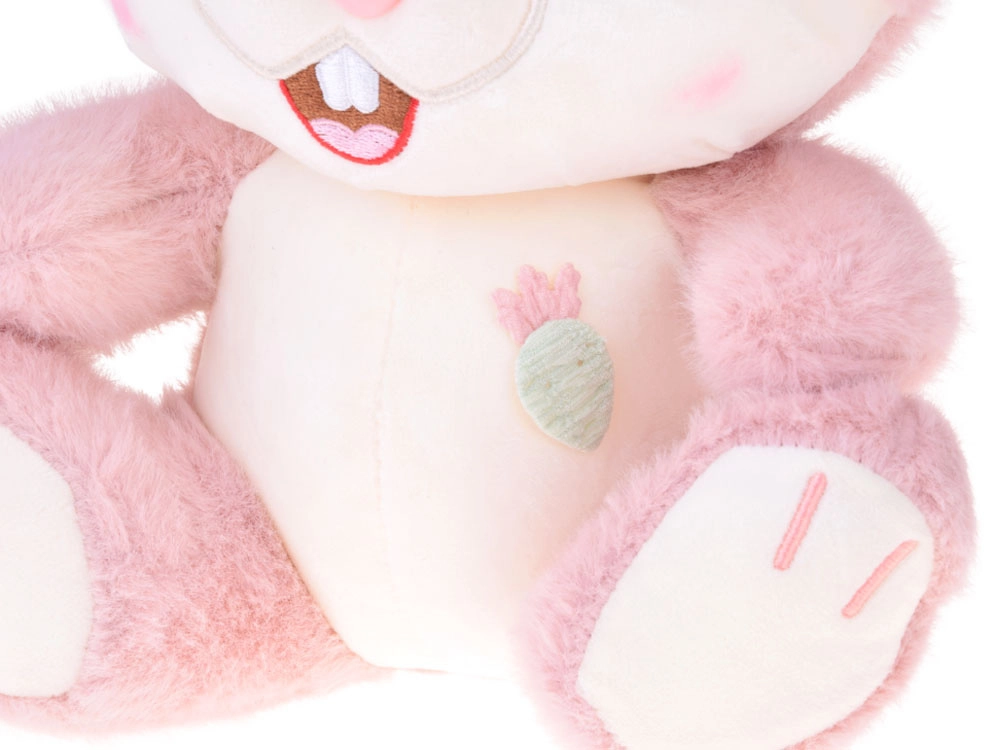 Seidig weicher Plüsch in pudrigem Rosaton mit kontrastierendem cremefarbenem Bauch lädt zum Kuscheln ein und wirkt beruhigend.