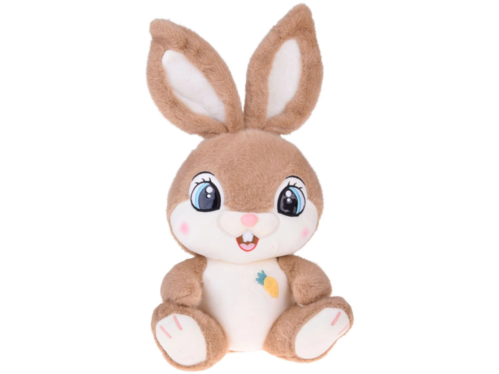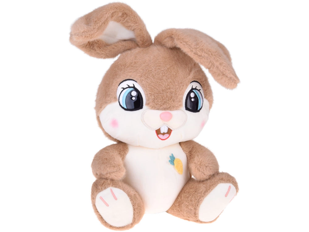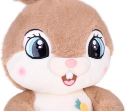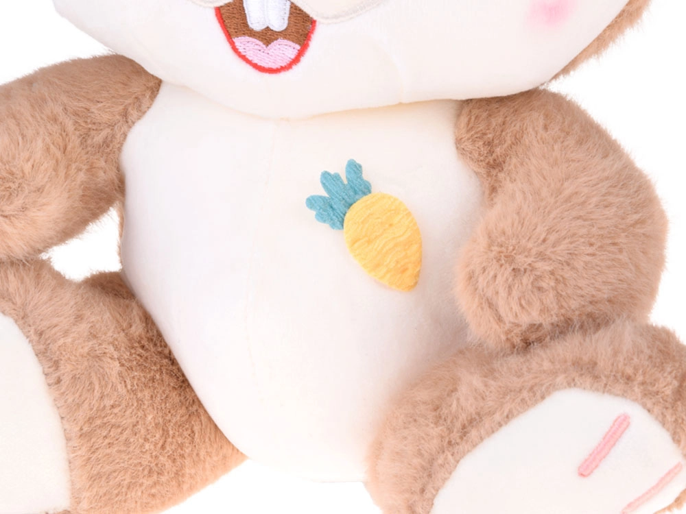 Das Plüschhäschen Karmelek besticht durch sein weiches karamellfarbenes Fell und den sanften Ausdruck mit niedlichen Zähnchen. Dank der eingenähten Verstärkung lassen sich die biegsamen Ohren leicht formen – so bekommt das Häschen immer wieder einen neuen Ausdruck. Das cremefarbene Bäuchlein mit dezentem Stickmotiv (Möhrchen/Ananas) verleiht dem Spielzeug einen charmanten Akzent.