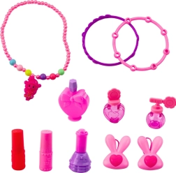 Armbänder, Perlenkette, Ringe, Kamm, Herzspiegel, Lippenstift-Imitate, Lack- und Parfüm-Imitate für stundenlanges kreatives Spielen.