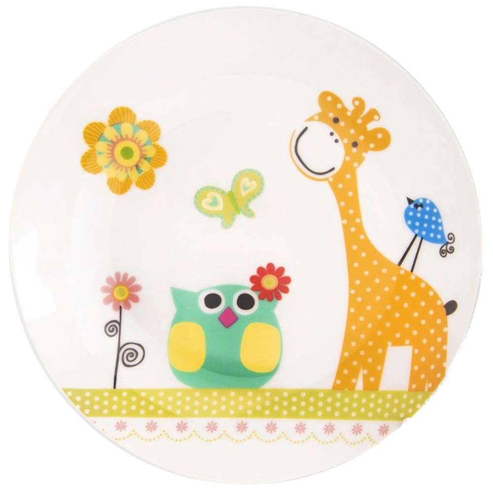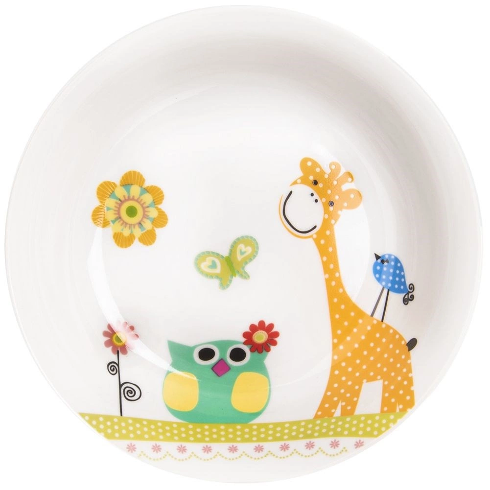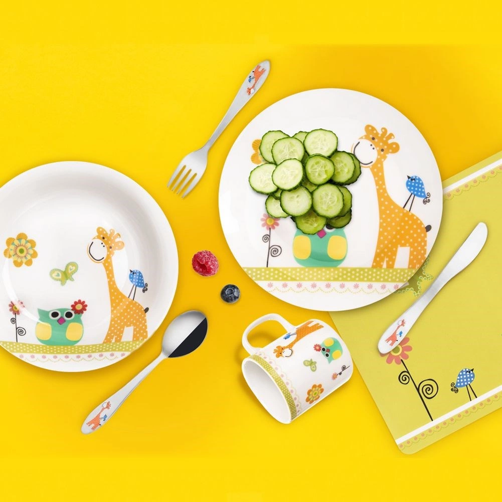 Schenken Sie Ihrem Kind Freude am Essen mit einem hochwertigen Porzellan-Set mit fröhlichen Motiven von Giraffe, Eule und weiteren Tieren. Zeitlos weißes Porzellan mit buntem Dekor unterstützt selbstständiges Essen und verschönert Frühstück, Suppen und Snacks.