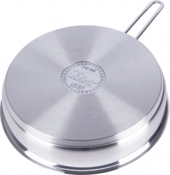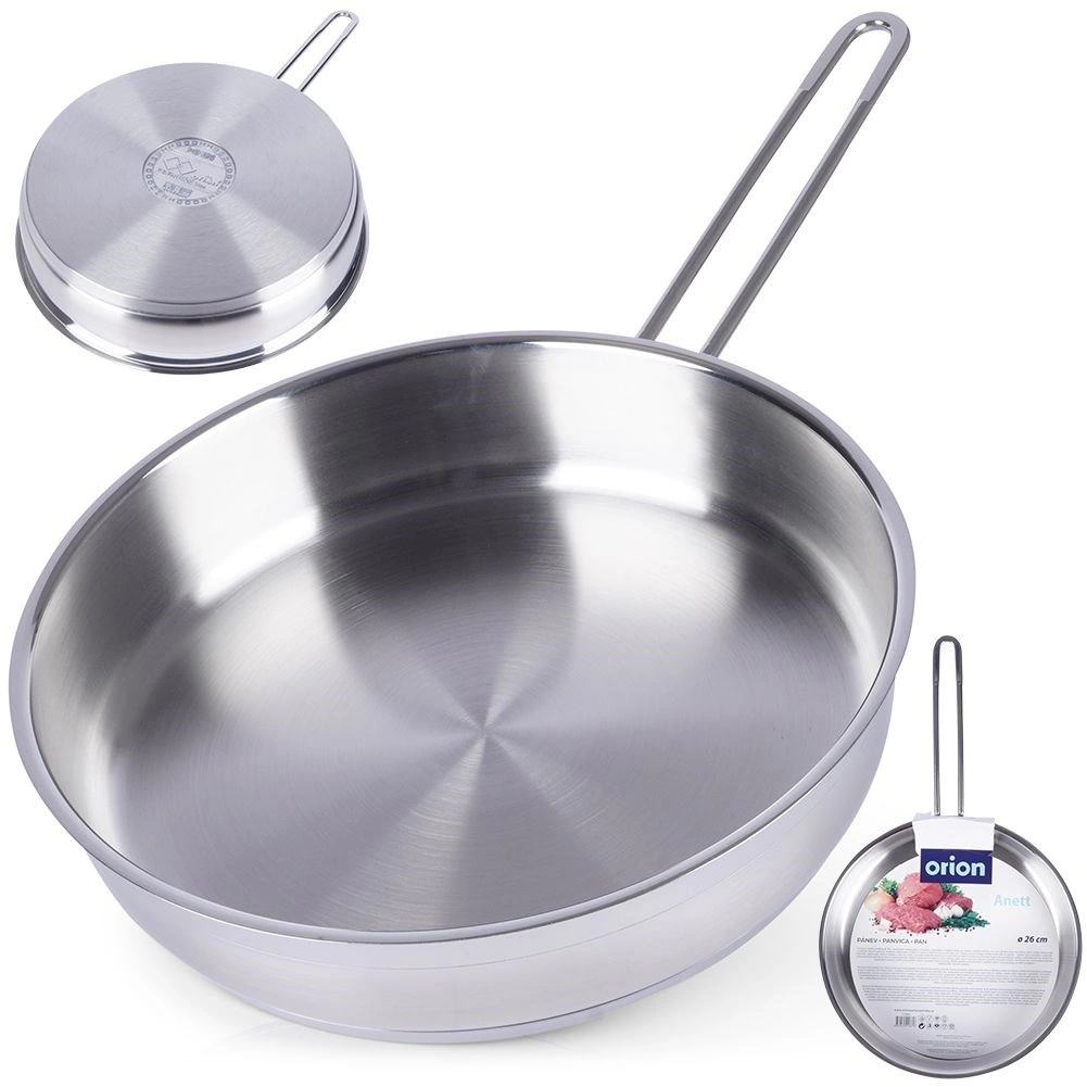 Die robuste Edelstahlpfanne ANETT mit 26 cm Durchmesser, hohen Rändern und komfortablem Griff ist ideal für den täglichen Gebrauch und für Profiküchen. Dank des mehrschichtigen akuthermischen Bodens speichert sie Wärme hervorragend, ermöglicht Kochen mit minimalem Fett und ist für alle Herdarten einschließlich Induktion geeignet. Sie lässt sich leicht reinigen und ist spülmaschinengeeignet.