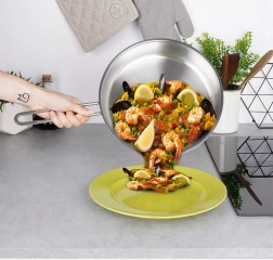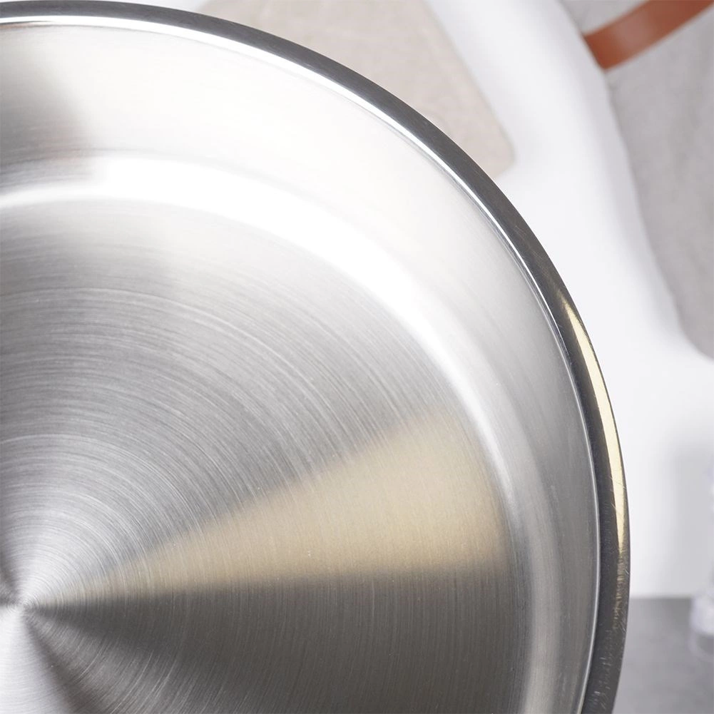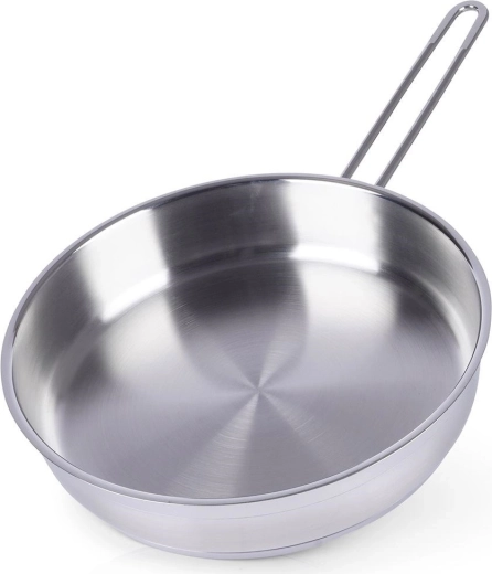 Die glatte Edelstahloberfläche lässt sich sowohl von Hand als auch in der Spülmaschine leicht reinigen. Die gut geformte Pfannenkörperform minimiert das Anhaften von Rückständen.
