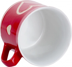 Dieser großzügige Becher aus hochwertiger Keramik verbindet Praktikabilität mit ansprechender Optik. Das rote Design mit zarten Herzchen ist ein Hingucker in jeder Küche und dank des Volumens von 650 ml ideal für große Portionen Tee, Kaffee, Kakao oder andere Heißgetränke.