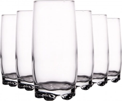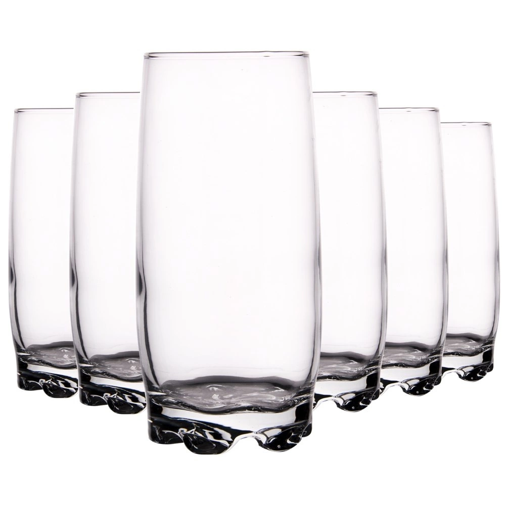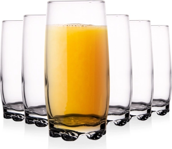 Elegantes Set aus 6 Getränkegläsern mit einem Volumen von 370 ml für den täglichen Gebrauch zu Hause und in der Gastronomie. Hohe, klare Gläser mit massivem Boden sorgen für Stabilität und lassen die Farben von Wasser, Säften, Limonaden und Eiskaffee schön zur Geltung kommen. Geeignet für die Spülmaschine für eine leichte Reinigung.