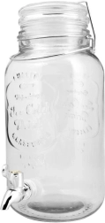 Der Deckel aus gehärtetem Glas ist mit Dichtung und Metallclip versehen, sodass das Getränk vor Wespen und anderem Ungeziefer geschützt bleibt. Der Spender besteht aus hochwertigem, dickem Glas mit Reliefverzierung, die jedem Tisch – zu Hause, im Garten oder in der Gastronomie – das gewisse Etwas verleiht.